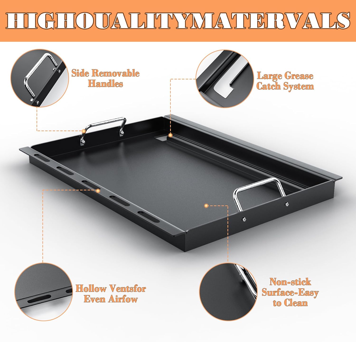 7524 Full Size Griddle Replacement Parts for Weber Genesis S310, E310, E320, S320, E330, S330, EP310, EP320, EP330, Carbon Steel Flat Top Grill Insert Parts with Handles for Weber Genesis 300 Series