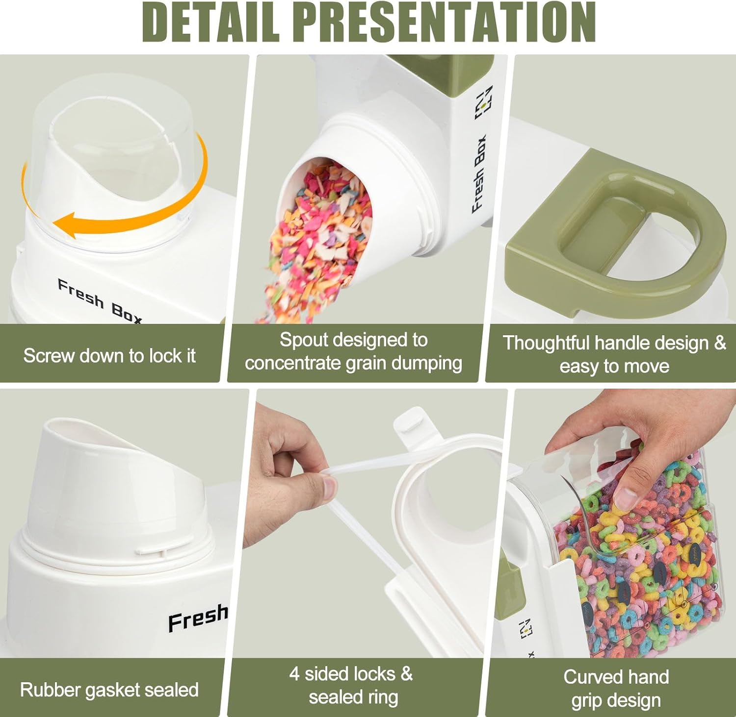 - Multifunctional Dry Food Storage Containers: Our cereal containers storage is designed for versatility, perfectly suited for storing not just cereal, but also beans, sugar, rice, nuts, snacks, pet food, candy, and even laundry beads – making it an essential addition to your pantry organization