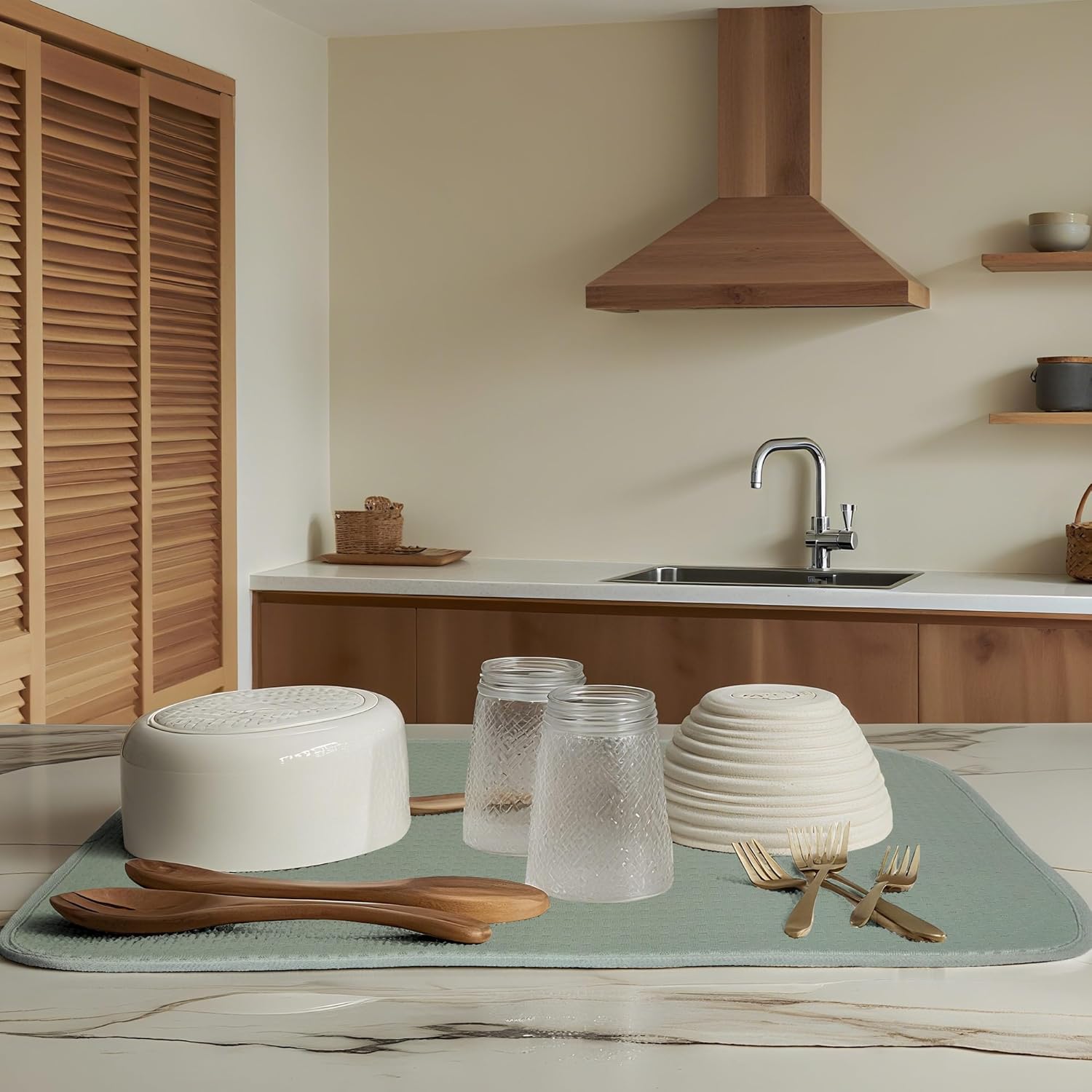- Convenient Cleaning: Easy to maintain, this dish drying mats for kitchen counter is machine washable, allowing for hassle-free cleaning. Simply wash it with mild detergent and air dry