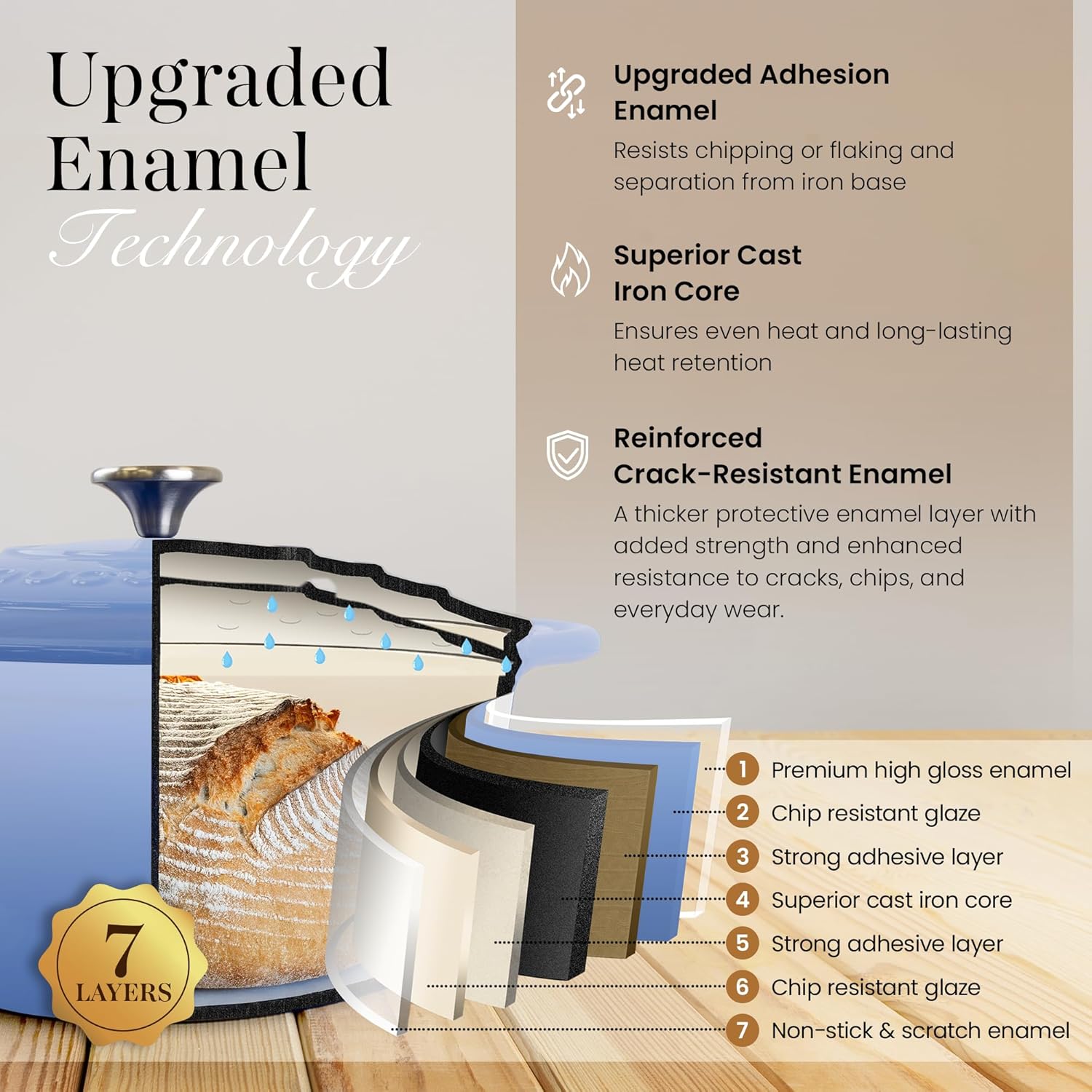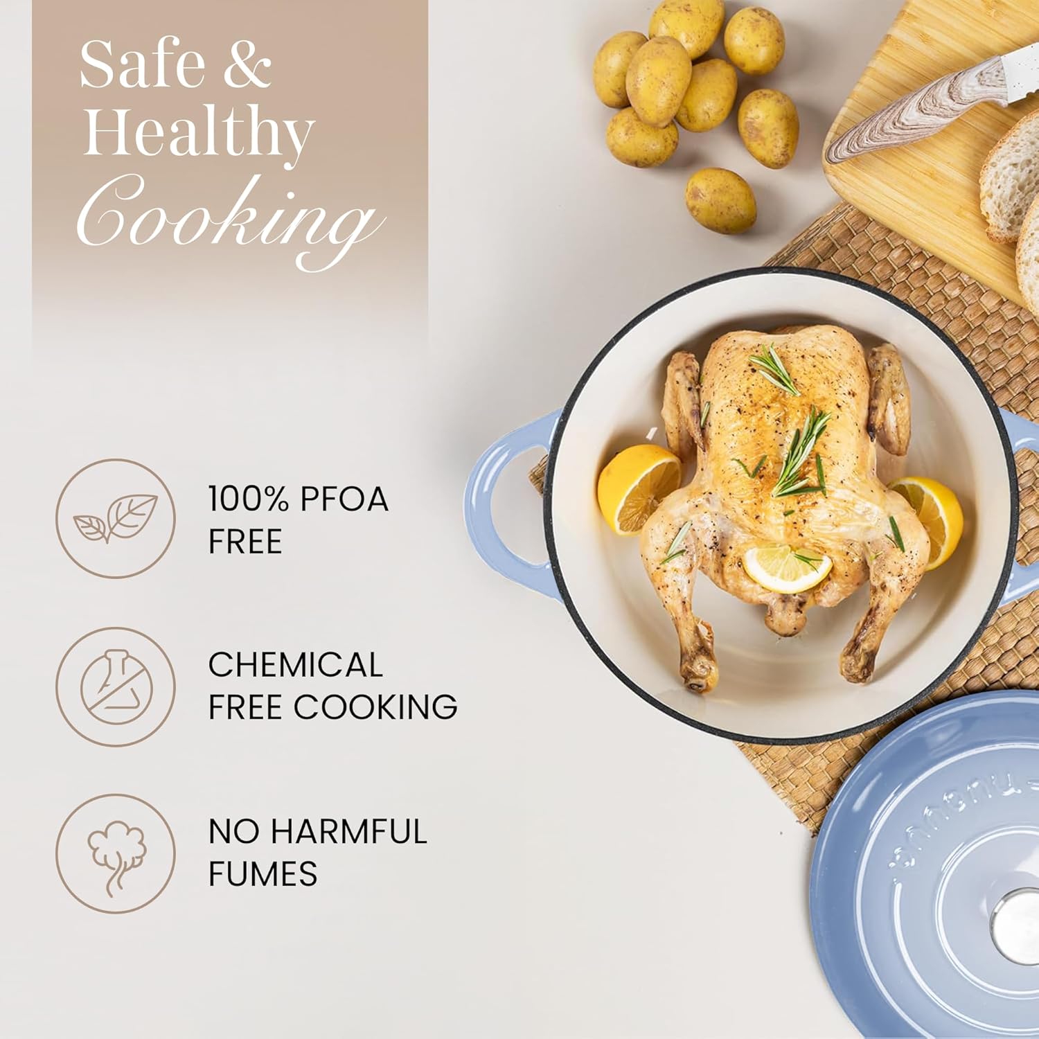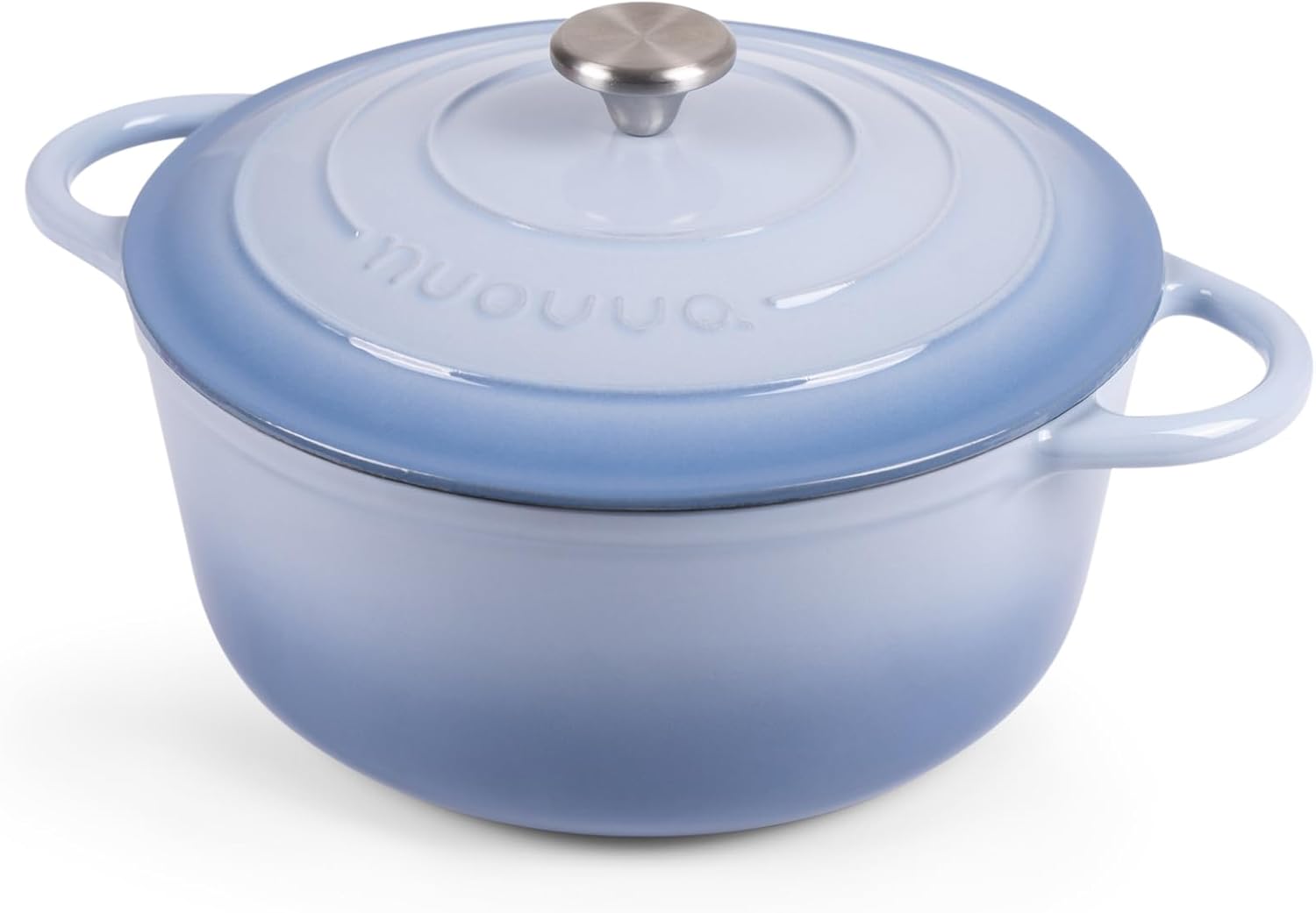 Nuovva Enamelled Cast Iron Dutch Oven Pot with Lid 6.4 Quart Non Stick Casserole Pot – Heavy Duty & Oven Safe up to 500° F for Bread Baking, Braising, Stews, Roasting – 28cm Costal Blue