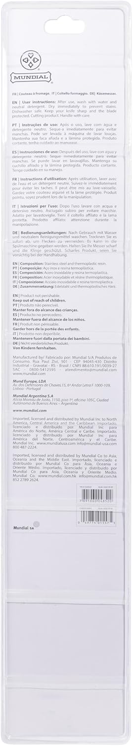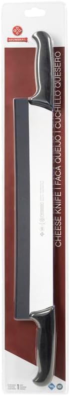 Mundial 16-Inch Carbon Stainless Steel Cheese Slicer Knife – Double Handle, Granton Edge for Non-Stick Cutting, Includes Safety Sleeve Protector, Ideal for Blocks of Cheese