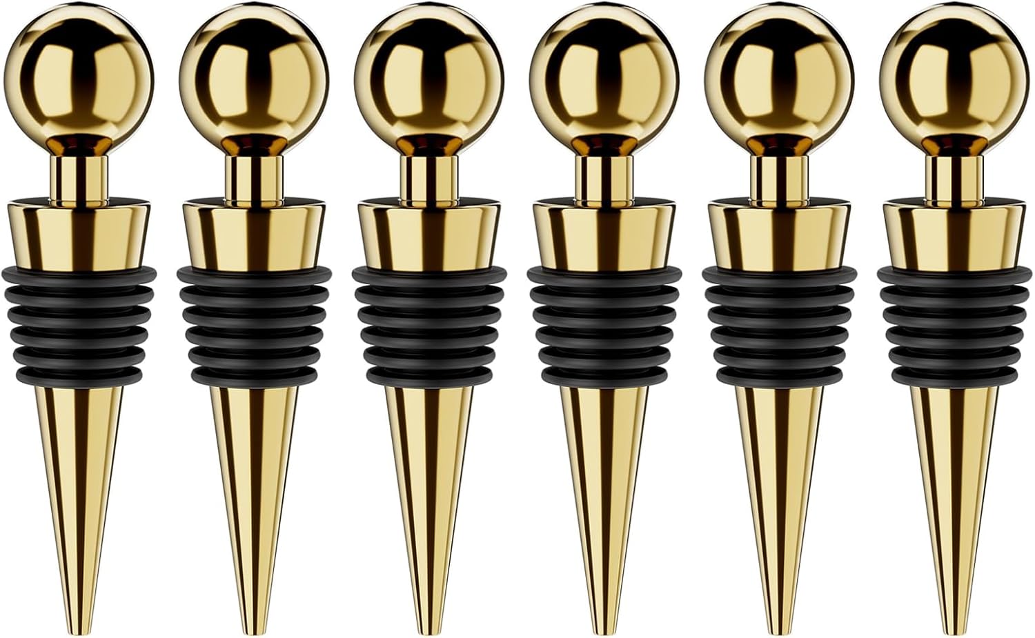 Wine Stoppers for Wine Bottles 6Pcs Vacuum Wine Bottle Stopper with Silicone Reusable Wine Corks, Leak proof Keep Fresh Suitable for Standard (Gold, 6 Pack)