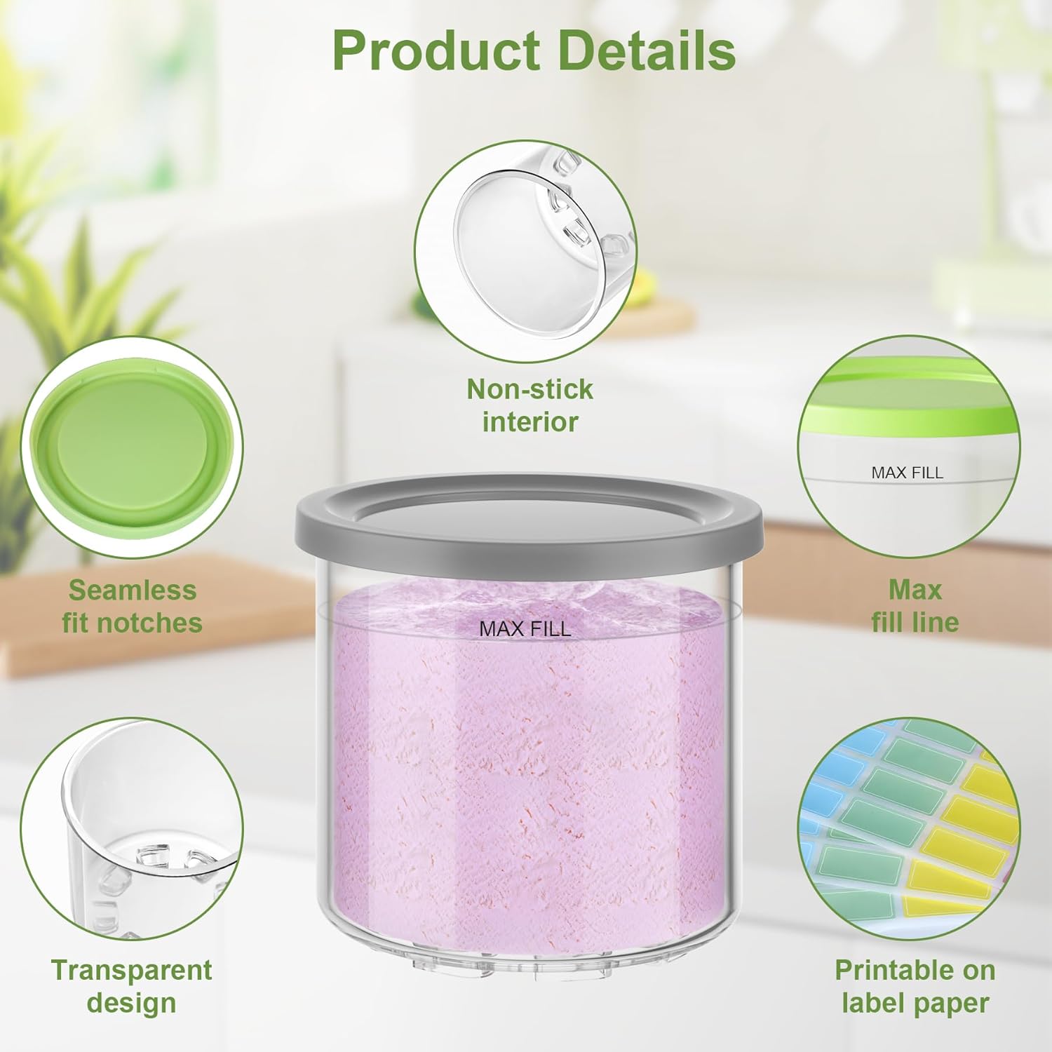 - [Additional Pint Containers] Made from high-quality, BPA-free plastic, these durable and reusable pint containers come with matching lids. With 4 pints included, you can easily store more of your homemade ice cream. Plus, we’ve added 4 spoons and writable labels for easy serving and flavor tracking! Perfect for convenience and creativity.