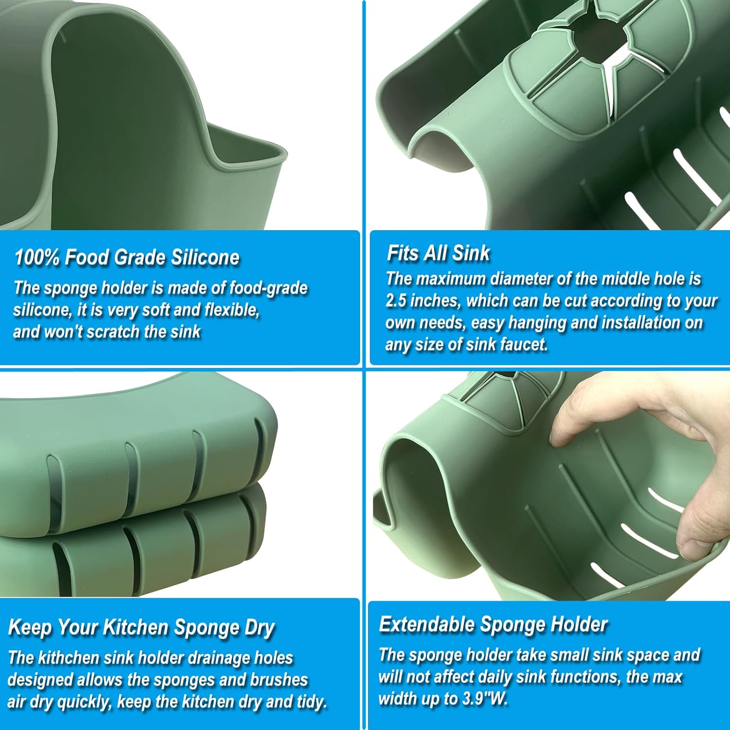 Sponge Holder for Kitchen Sink, Silicone Sink Saddle Caddy Organizer Rack, Sponges Holder Over Faucet, Hanging Kitchen Organizer Accessories Rack Basket Green