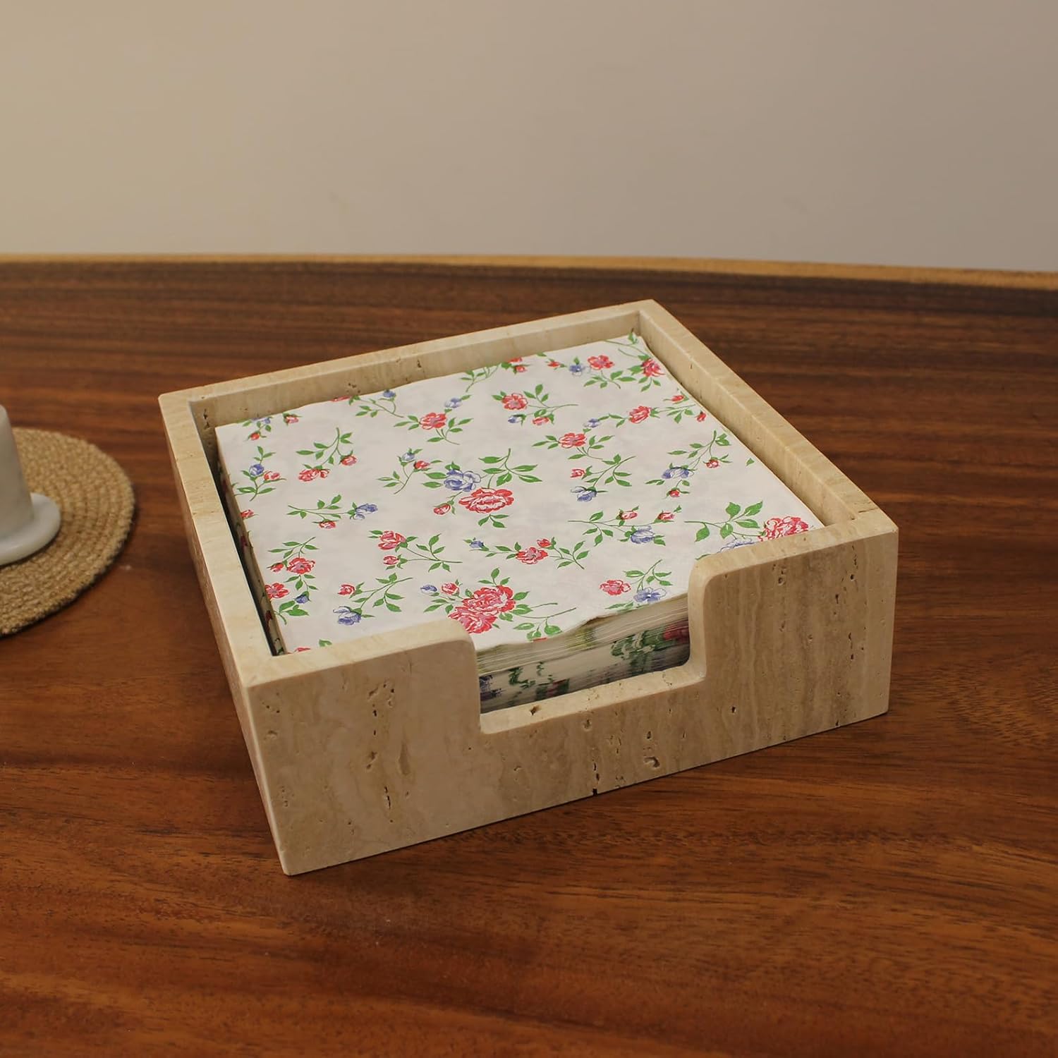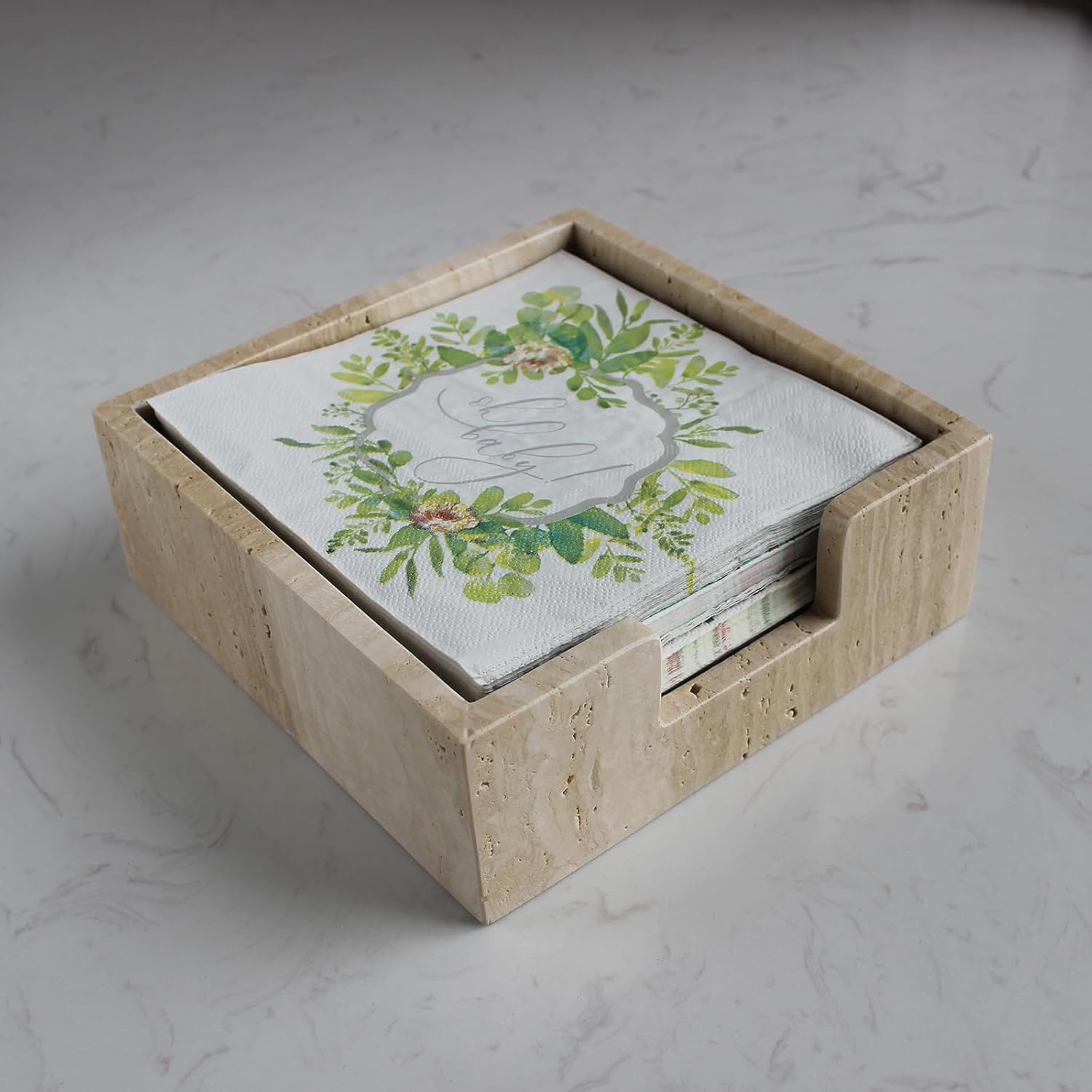 - 100% Natural Travertine: The Napkin Holder is carved from beige travertine, with irregular HOLES and a MATTE finish