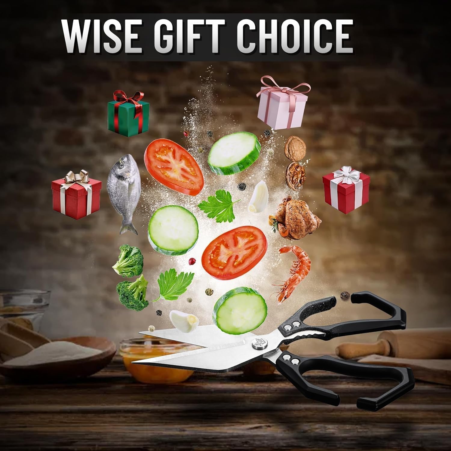 Dream Reach Kitchen Scissors for Food Heavy Duty Poultry Shears with Ergonomic Handle, Japanese High-Carbon Steel Culinary Shears for Chicken, Meat, Seafood, Bone Cutting, Gift Box Included (Black)