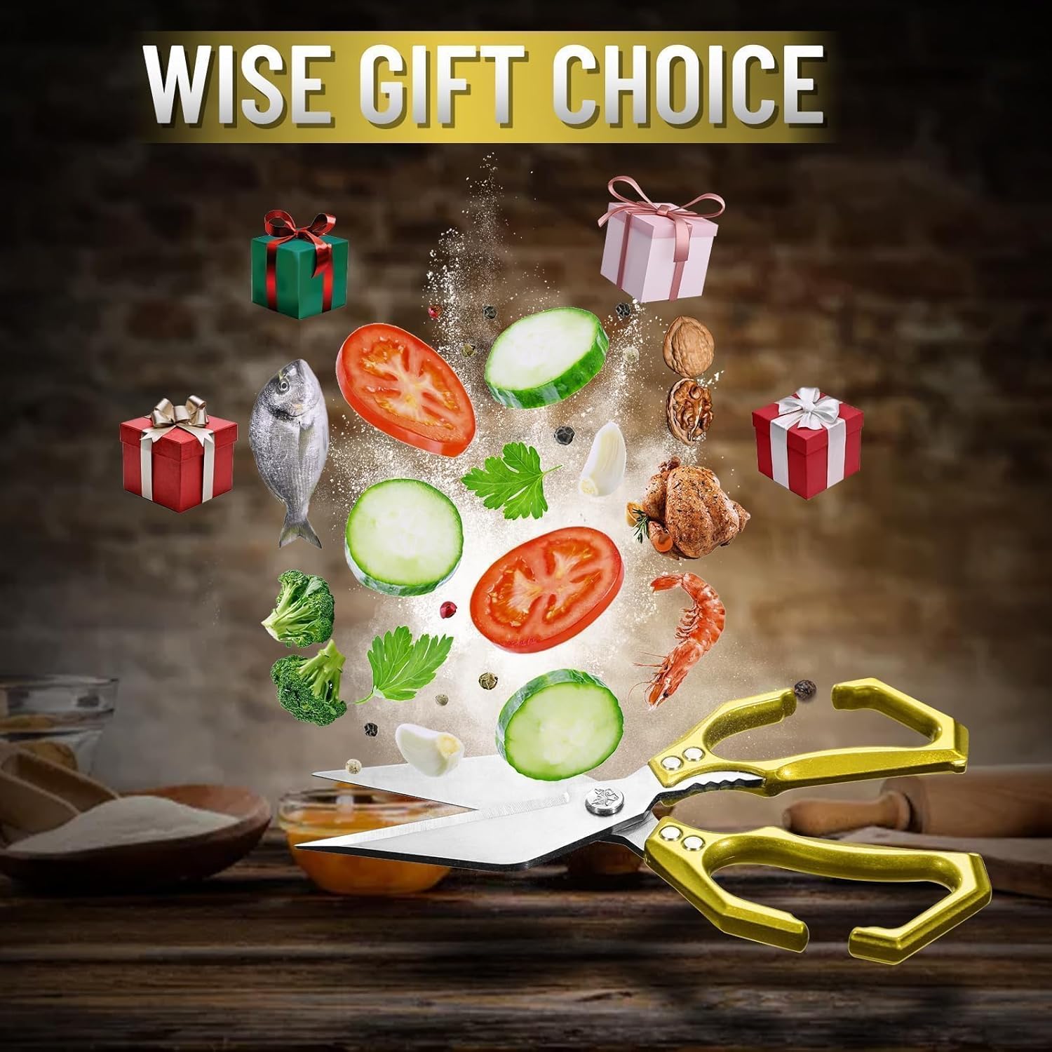 - Versatile Culinary Tool: More than just culinary scissors, these gold kitchen scissors feature an inner serrated edge for cracking nuts and gripping slippery items. Their multi-functional design caters to all your cooking needs, whether you're preparing fish, lobster, or a hearty roast.