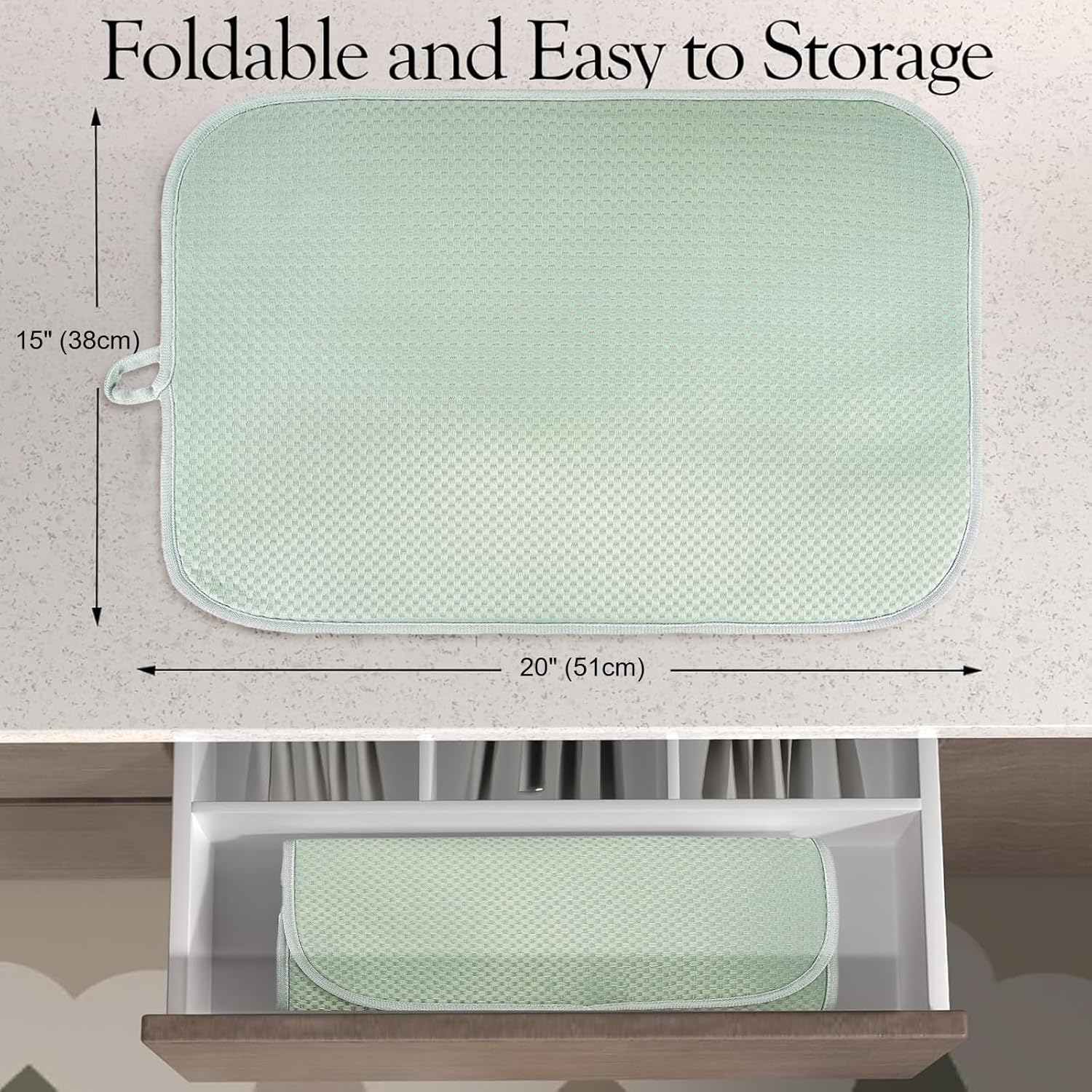 Sage Green Dish Dryer Mat, Dish Drying Mats For Kitchen Counter, Large Dish Drying Pad for Kitchen Counter, Microfiber Dish Drying Mat, for Sinks, Drainer Mats, 20 x 15 inches (Green)