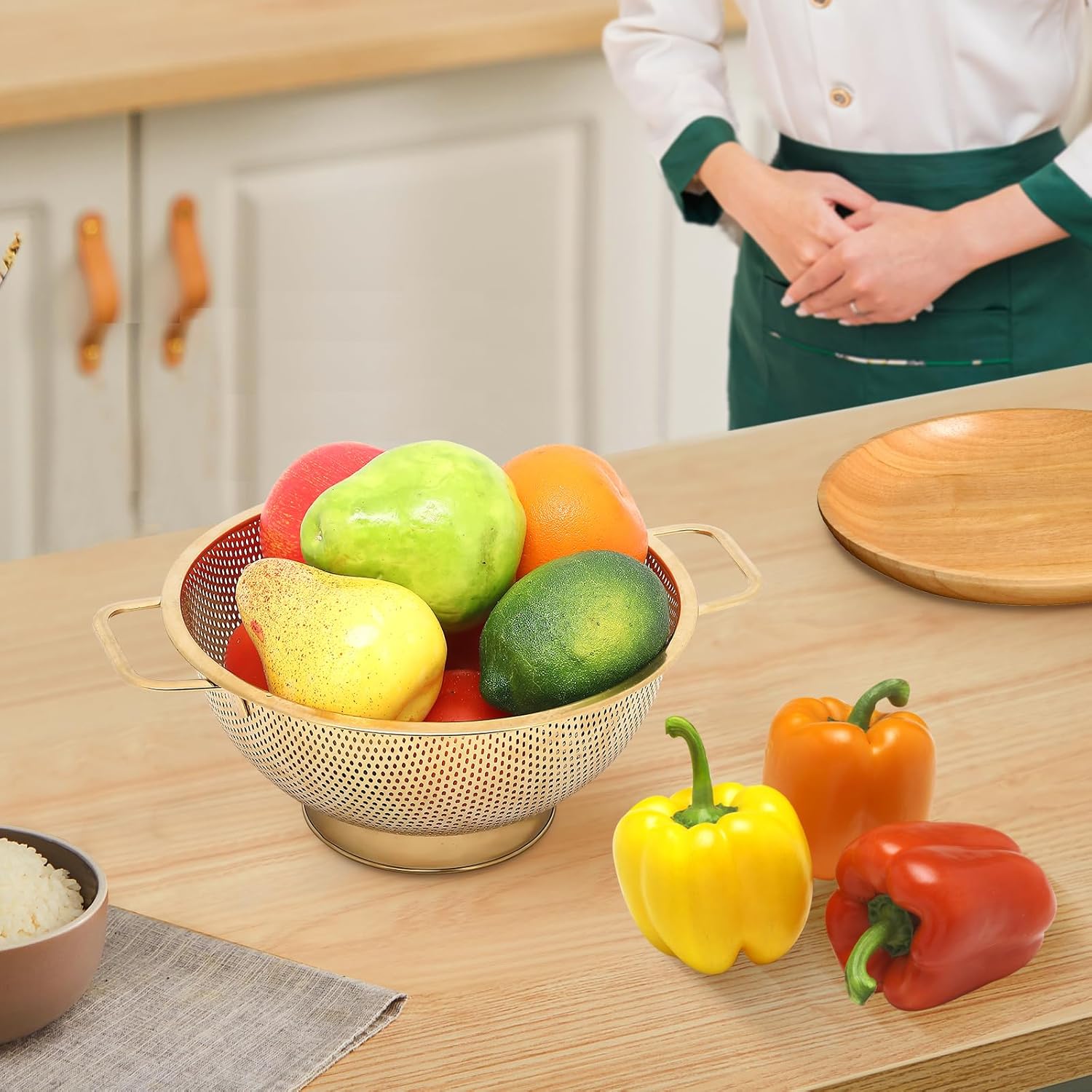 - 【SUITABLE】Best for all your cooking, straining and preparation needs. The colander is great for washing, rinsing, draining; Perfectly used for pasta, spaghetti, vegetable, fruit, meat and others.