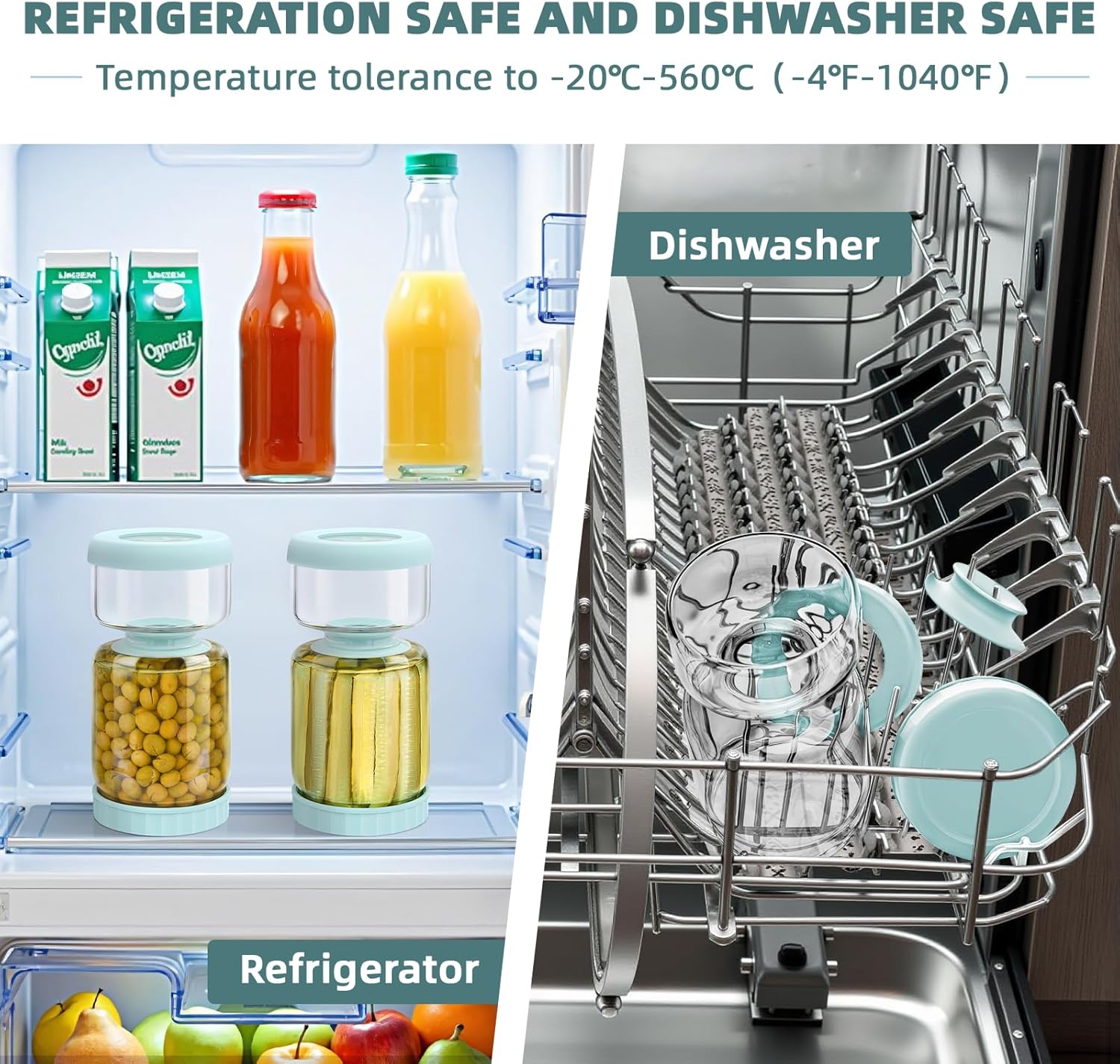 - 【LARGE CAPACITY】The olive jar is made of premium lead-free high borosilicate glass. It's safer than plastic and odorless. It is more durable than steel material and will not be corroded. The all capacity is 1350ml/46oz, the upper half capacity is 900ml/30.4oz, and the lower half capacity is 450ml/15.2oz. The filter and non-slip base is made of BPA-free, food-grade soft silicone and is ready to be removed and cleaned.