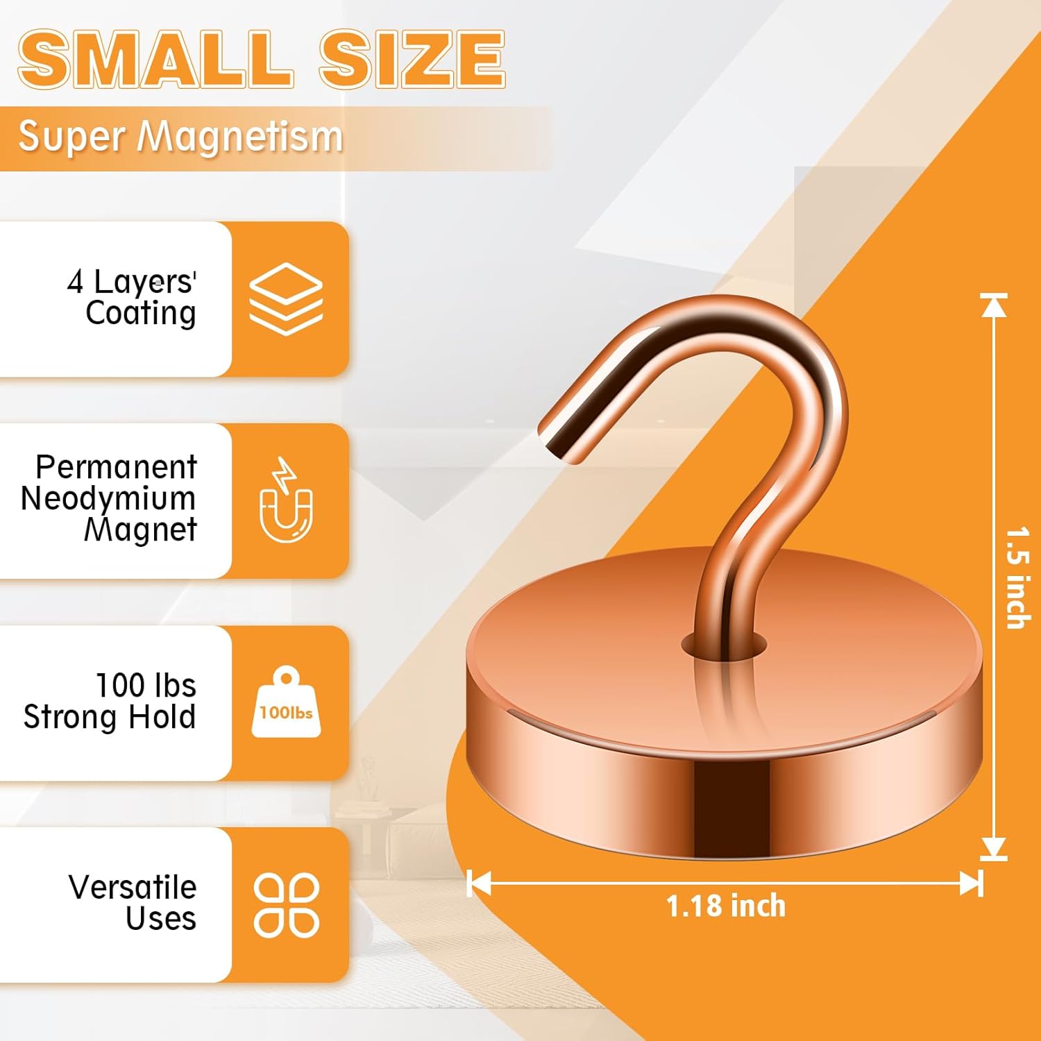 Neosmuk Magnetic Hooks, Cruise Ship Essentials, 100lb+ Heavy Duty Magnetic Hooks for Cruise Cabins, Refrigerator, Grill, Hanging, and Travel | Extra Strong Must-Haves Magnet Hook,Gold