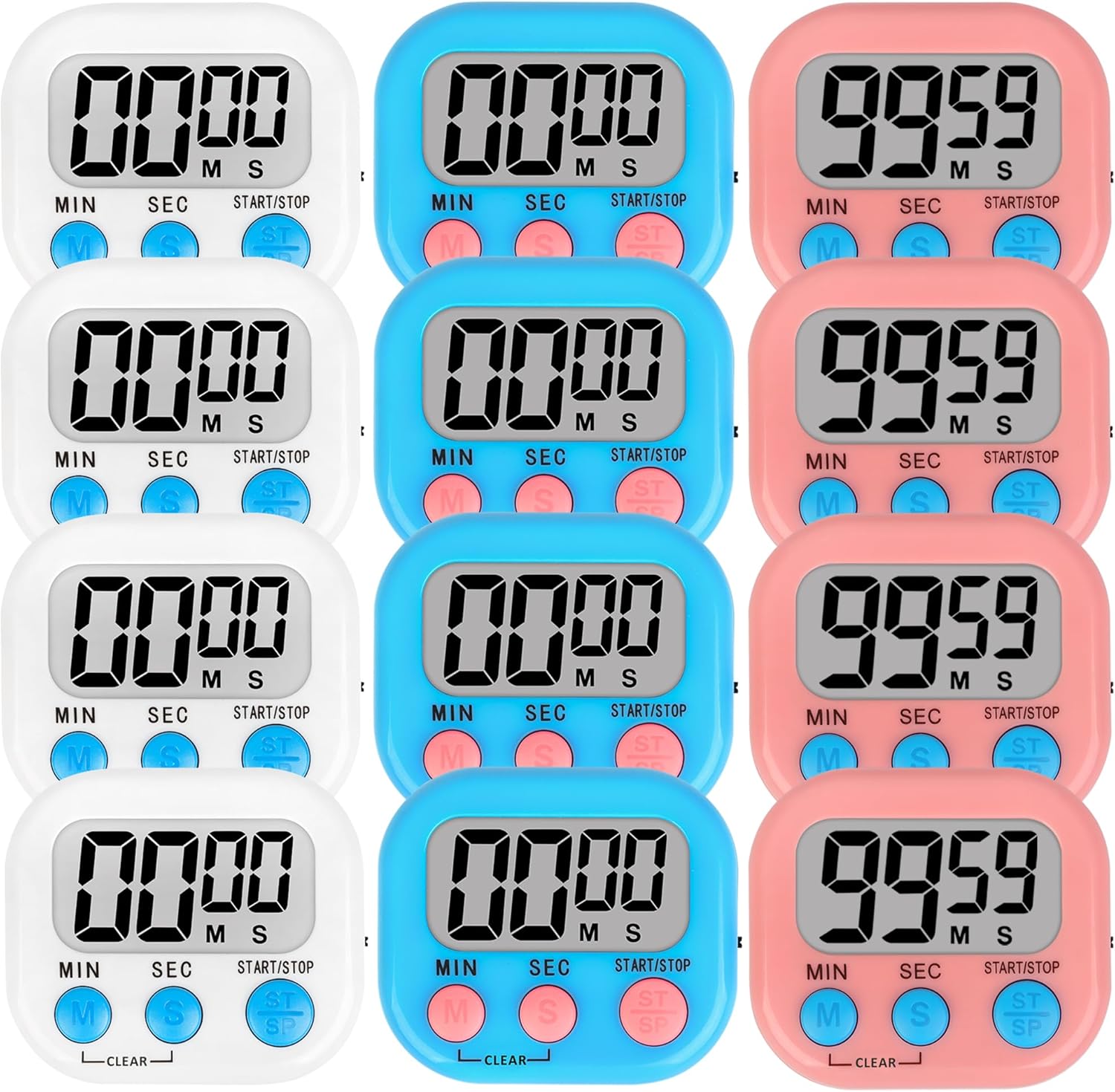 ZILLEEN 12 Pack Kitchen Timers for Cooking Digital Classroom Timers for Kids Teachers White Pink Blue