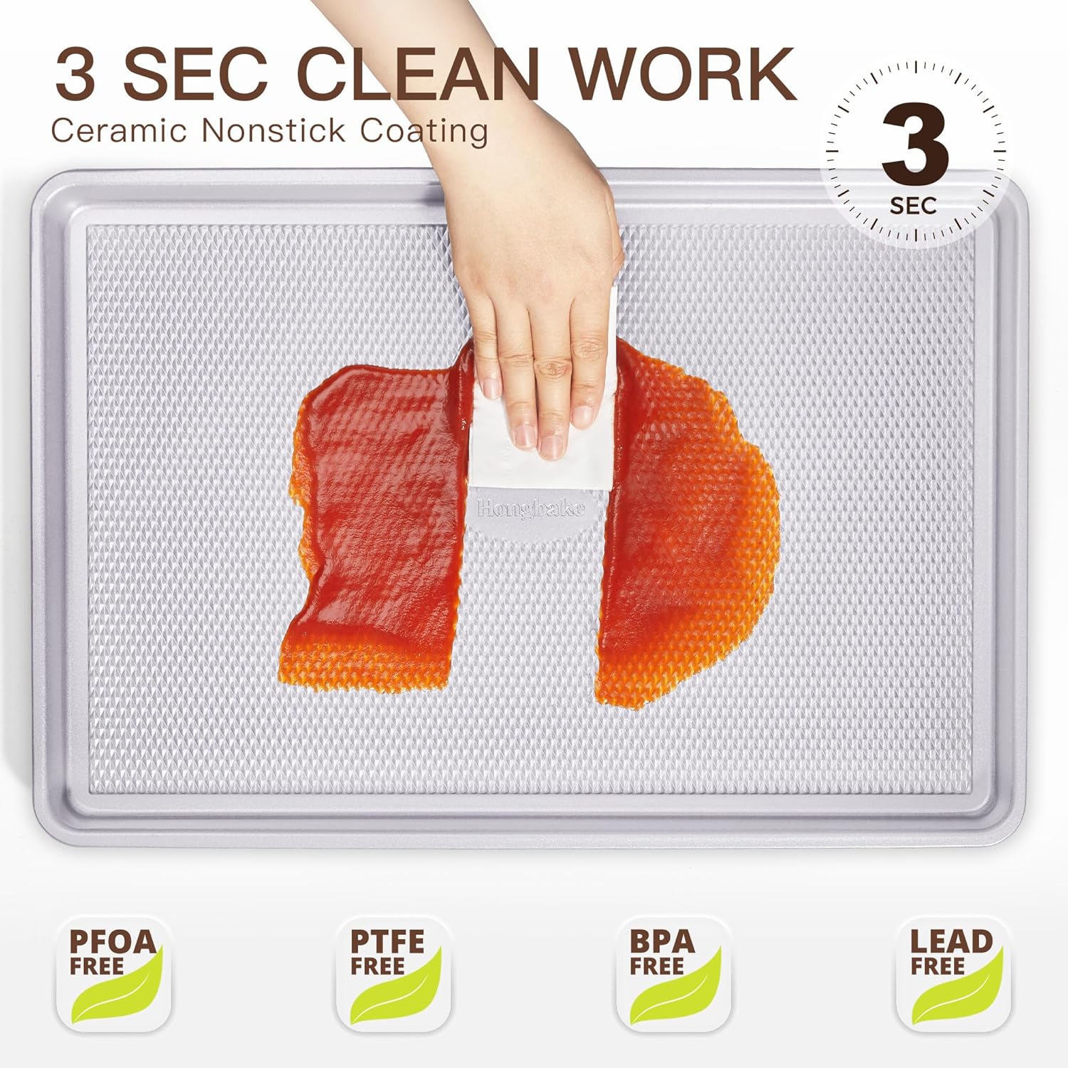 - HEALTHY CERAMIC NON-STICK COATING - Crafted with a natural ceramic non-stick coating, these oven pans make baking effortless, ensuring your cookies slide off with ease. Clean-up takes just 3 seconds. Free from PFOA, PTFE, BPA, and lead, they offer a healthier option. More durable than traditional coatings, these pans stay like new, even after 8 months of use.