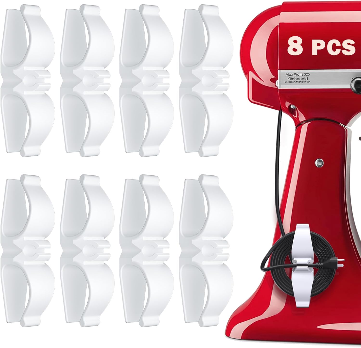 Cord Organizer for Appliances, 8 Pack Upgraded Kitchen Appliance Cord Organizer Stick On Appliance Wire Organizer Wire Wrapper for Kitchen Appliances Mixers, Coffee Maker, Pressure Cooker
