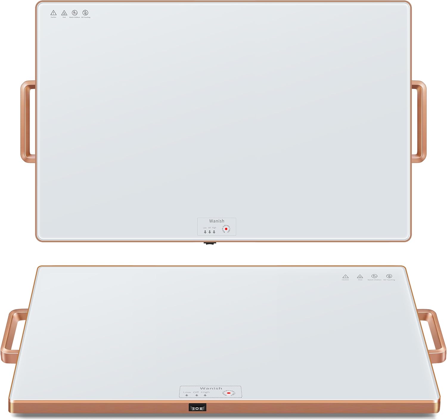 - Unique Warming Tray - Wanish warming trays for buffets party are designed to keep dishes at a consistent, warm temperature, making them ideal for buffets, parties, or family gatherings. Made of heat-resistant tempered glass with gold handles and metal edges, the food warming tray is both elegant and anti-scald. With a large capacity for multiple dishes, easy-to-use push-button temperature control, and a built-in thermostat to keep the food warmer tray safe to use for long periods of time.