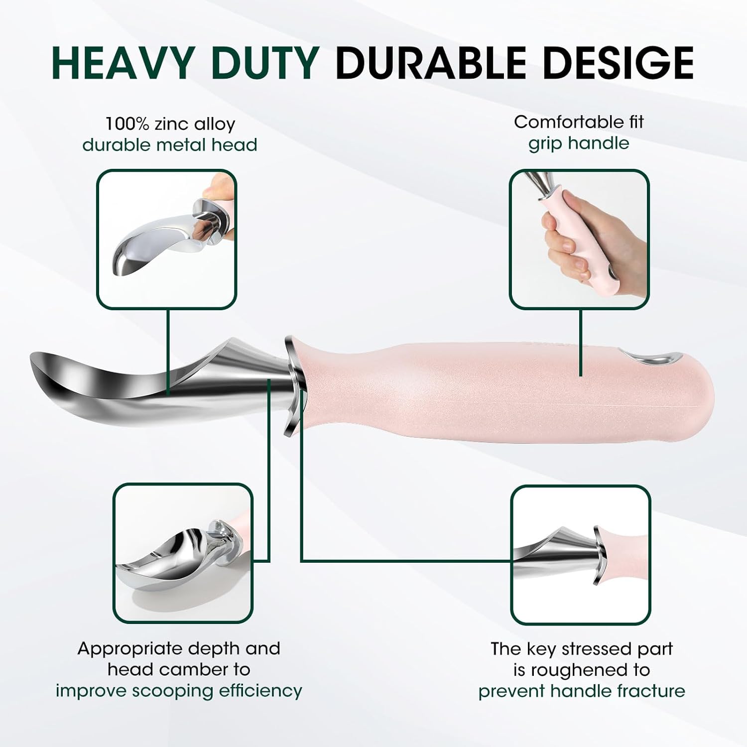Beneno Heavy Duty Ice Cream Scoop - Upgraded Anti-Fracture Design, Comfortable Grip Long Handle, Effortless Scooping & Dishwasher Safe, Pink