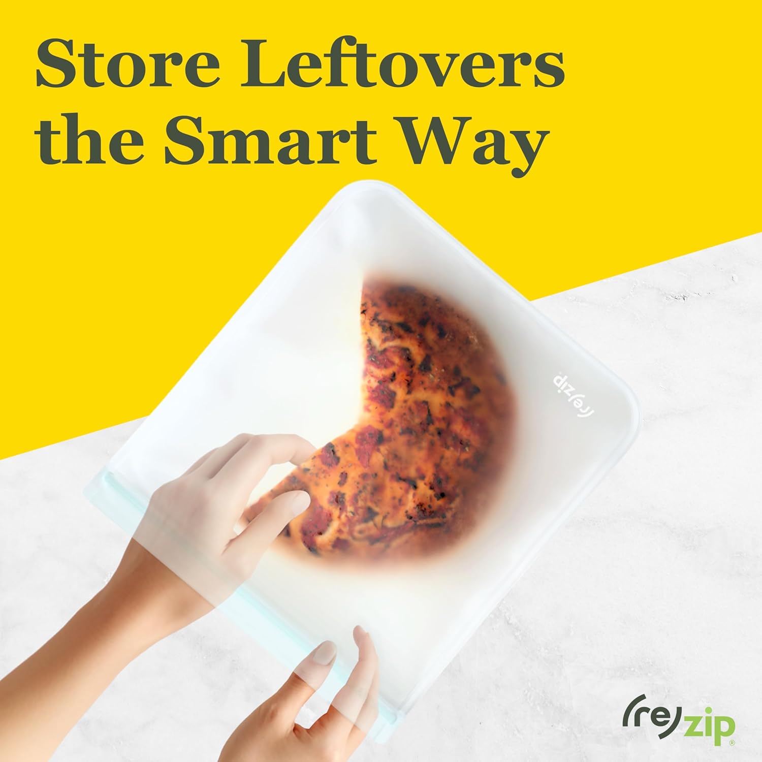 - COMPACT STORAGE & EASY CLEANING: When not in use, these bags fold flat for space-saving storage. Handwash is recommended for best results. Add a drop of dish soap with water to your bag. Seal it up and shake it around. Rinse thoroughly. (re)zips are top-rack dishwasher safe on a standard setting. Note: Do not use in microwave, sous vide, or high-heat use; cool foods before storing.