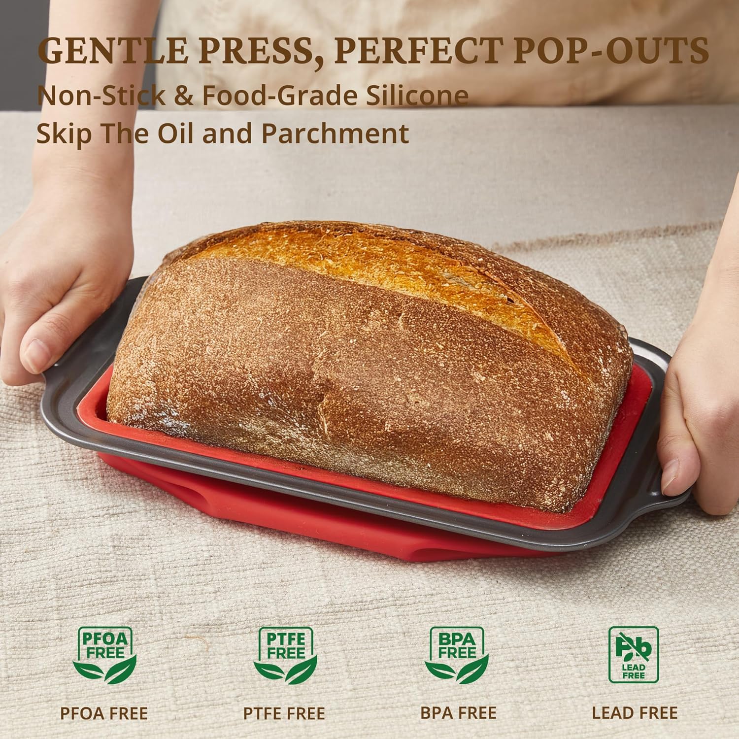 - Non-Toxic & Safe: Our silicone bread loaf pan is made from 100% food-grade, BPA-free silicone, meeting strict U.S. quality standards. It's a safe and healthy choice for your kitchen, one you can trust.
