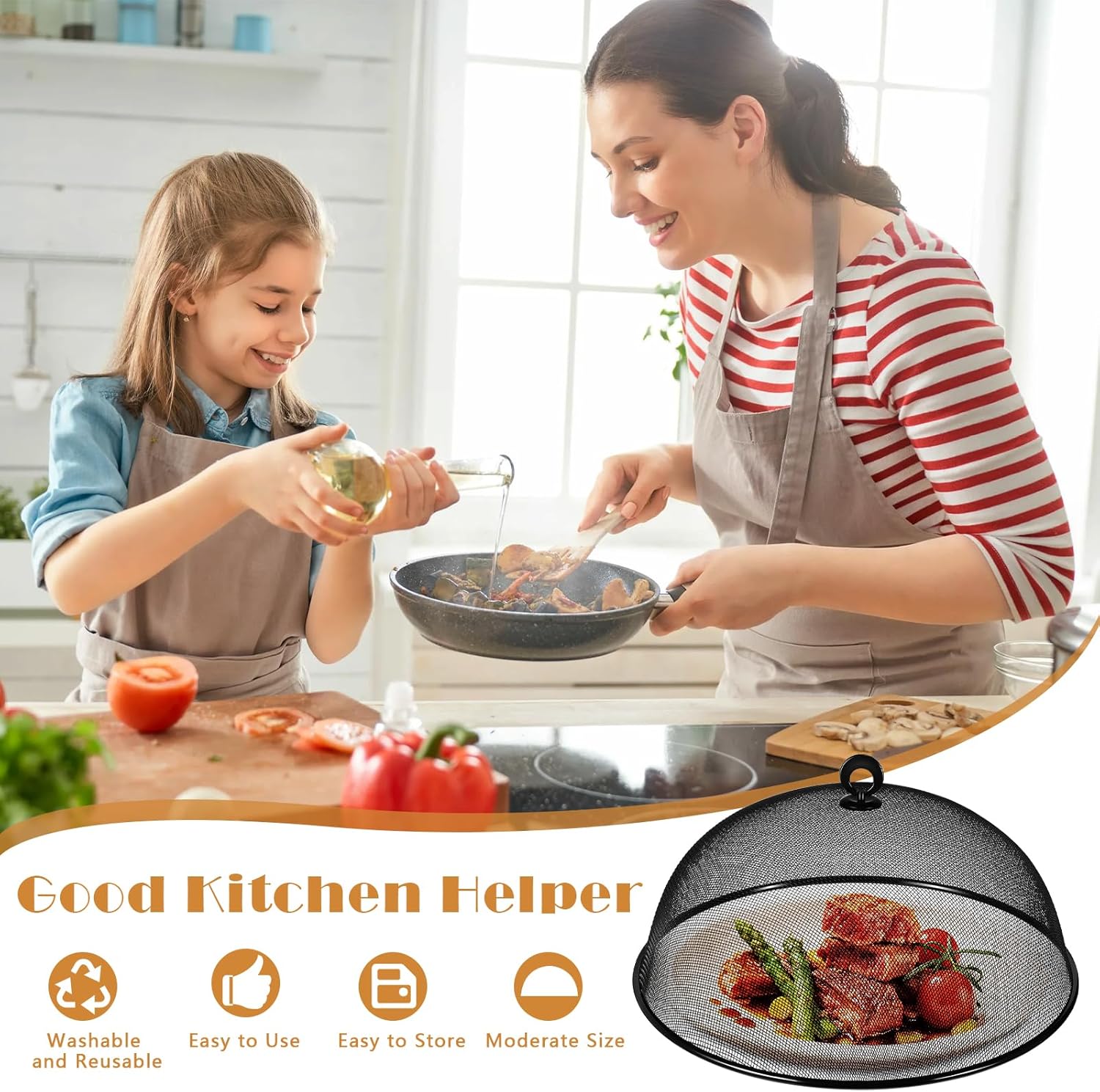 - Multiplicity in Size: every package contains 4 metal mesh food covers for outdoors in black,catering to different consumer needs, metal screen food covers for outdoor eating are available in a variety of sizes, 14 inches, 12 inches, 11 inches, and 10 inches in diameter; Whether you're covering a large salad bowl or a small dessert plate, there's a mesh cover to fit your requirements