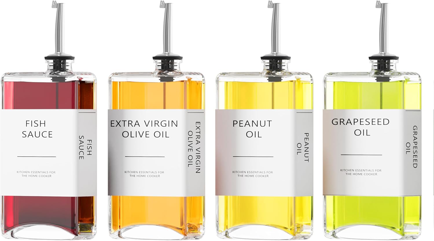 New England Stories Kitchen Cooking Oil Dispenser Set, Olive Oil and Vinegar Bottles, Soy Sauce Dispenser - 4 Pieces, Silver, Durable & Stylish Design