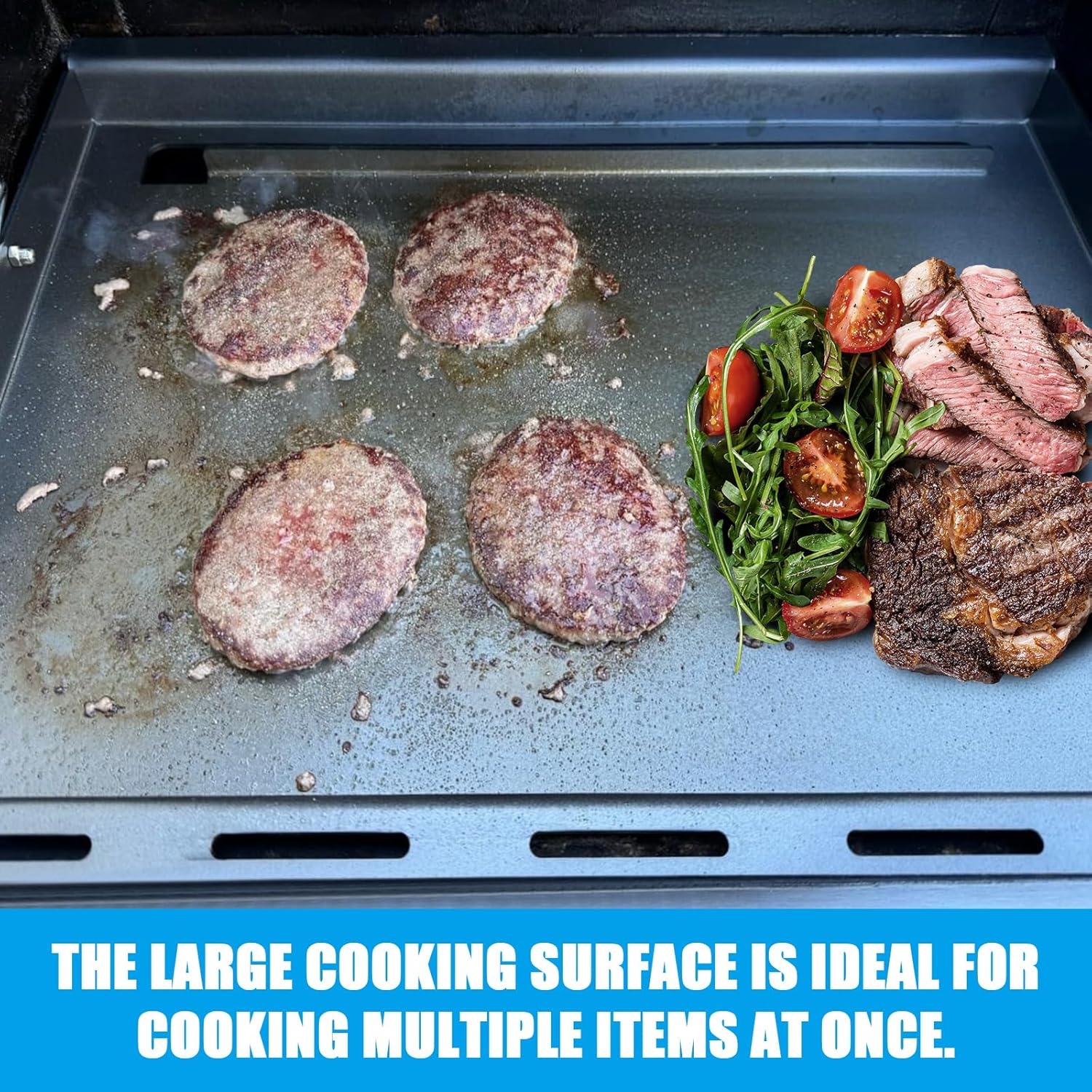 - SPACIOUS COOKING AREA: The Full-Size Cooking Griddle features a spacious cooking area that is perfect for cooking a variety of foods at the same time, and can be used to cook a wide range of foods such as pancakes, eggs, sautéed vegetables, and meats, ensuring that you cook efficiently at family gatherings or parties