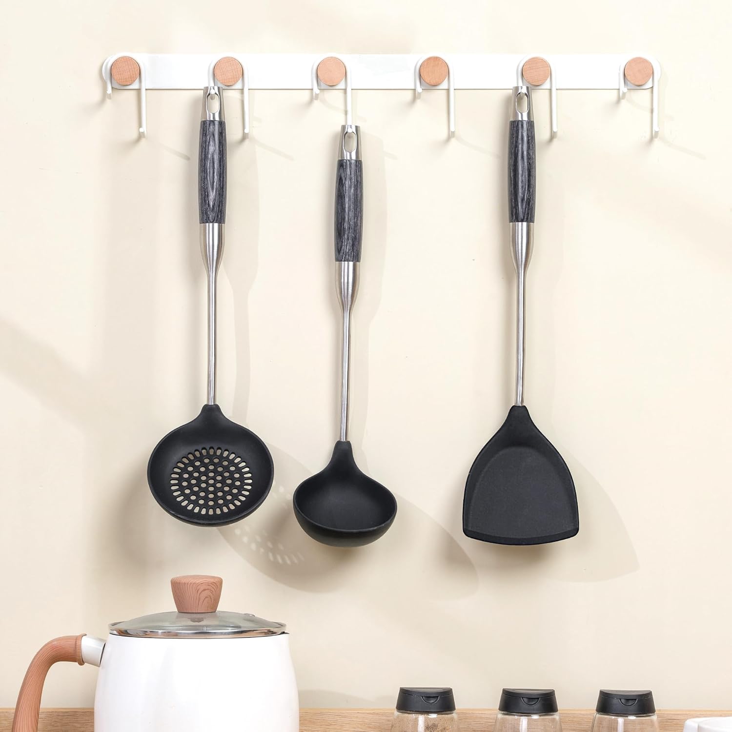 - Unique design cooking utensils : Wooden handle combination of 304 stainless steel and food-grade silicone,special and durable