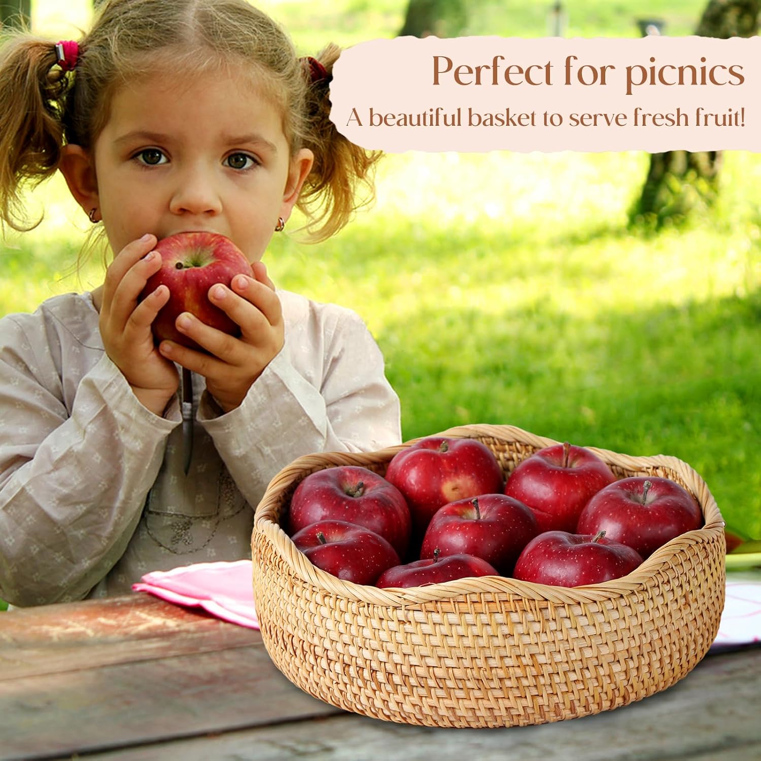 Rattan Scalloped Bread Basket, Round Fruit Baskets, Wicker Storage Bowls, Natural Woven Serving Basket Bowls, Decorative Baskets for Kitchen Counter Organizing, 1 PCS, 11.2 x 11.2 x 3.9 inches