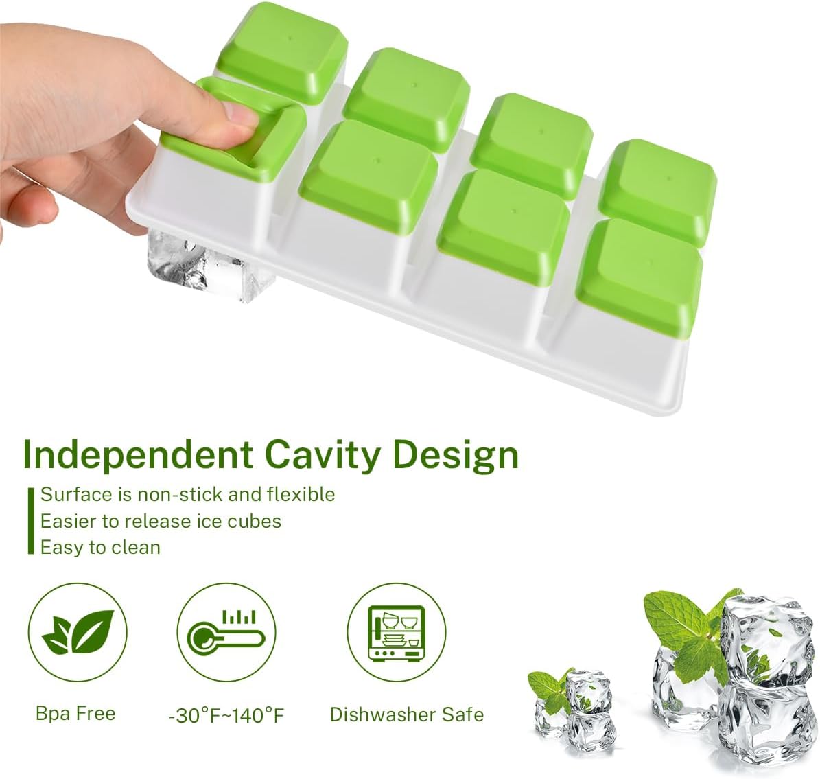 - 【 Easy to Use & Clean】The ice mold flexible silicone base allows ice to pop out easily, and the non-stick surface is dishwasher-safe for quick cleaning. The secure lid prevents spills, ensuring hassle-free freezing.