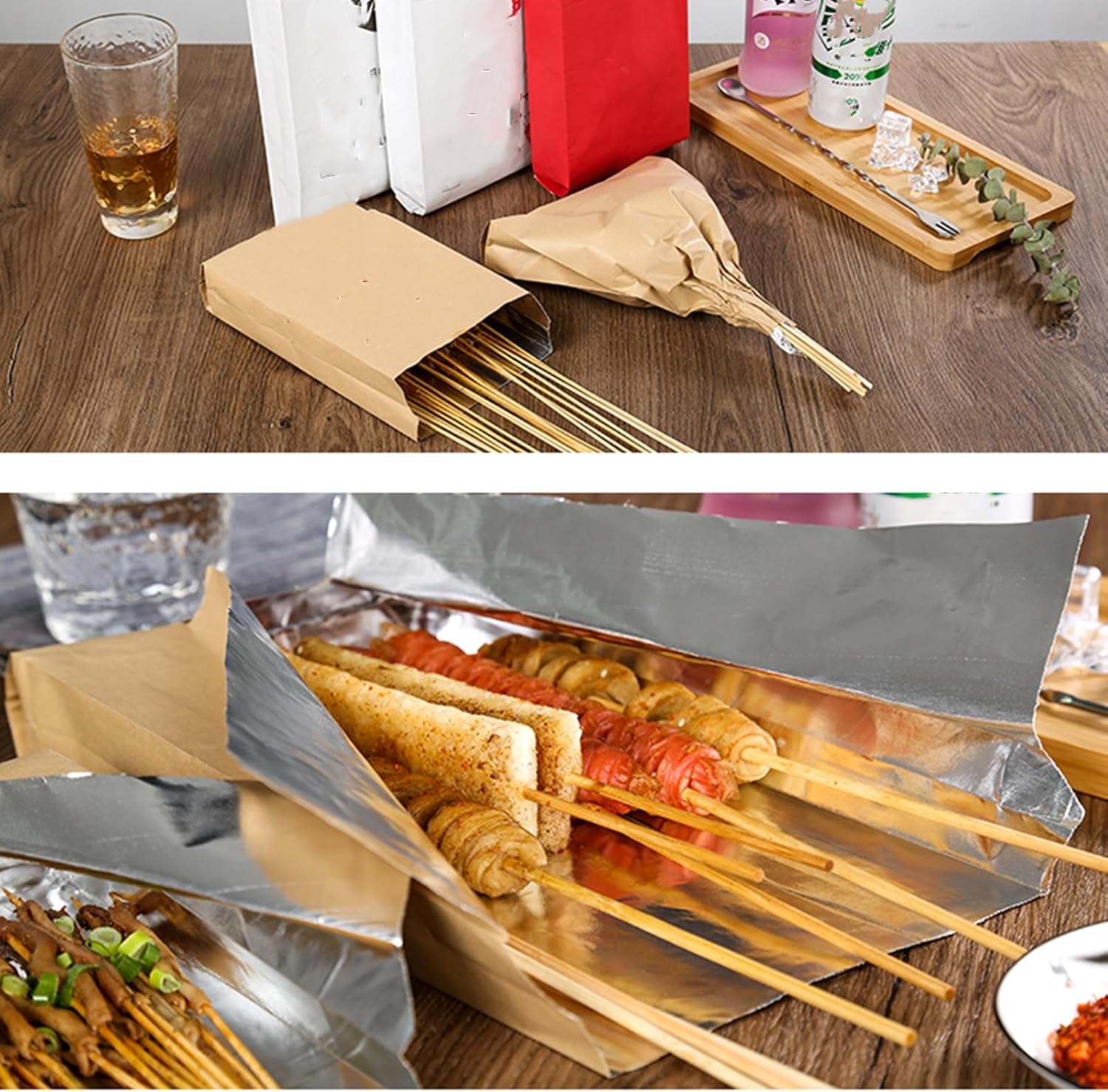- Comes with 150 pack insulated foil sandwich bag. Each aluminum foil bag measures approximately 6.3”L x 1.5”W x 10”H, can hold up to 4 pounds. A sufficient quantity and perfect size can accommodate hot and cold foods for transport