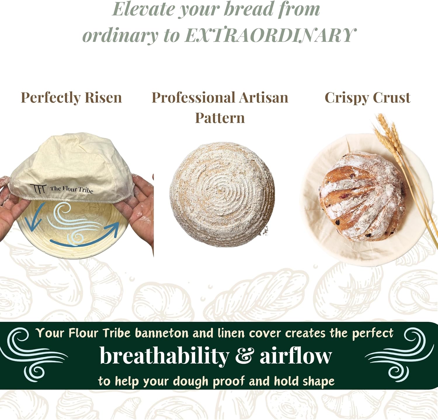 - CREATE ARTISANAL BREAD AT HOME: Master the art of sourdough making with The Flour Tribe's high quality bread proofing baskets and liners to create professional looking and well proofed bread!