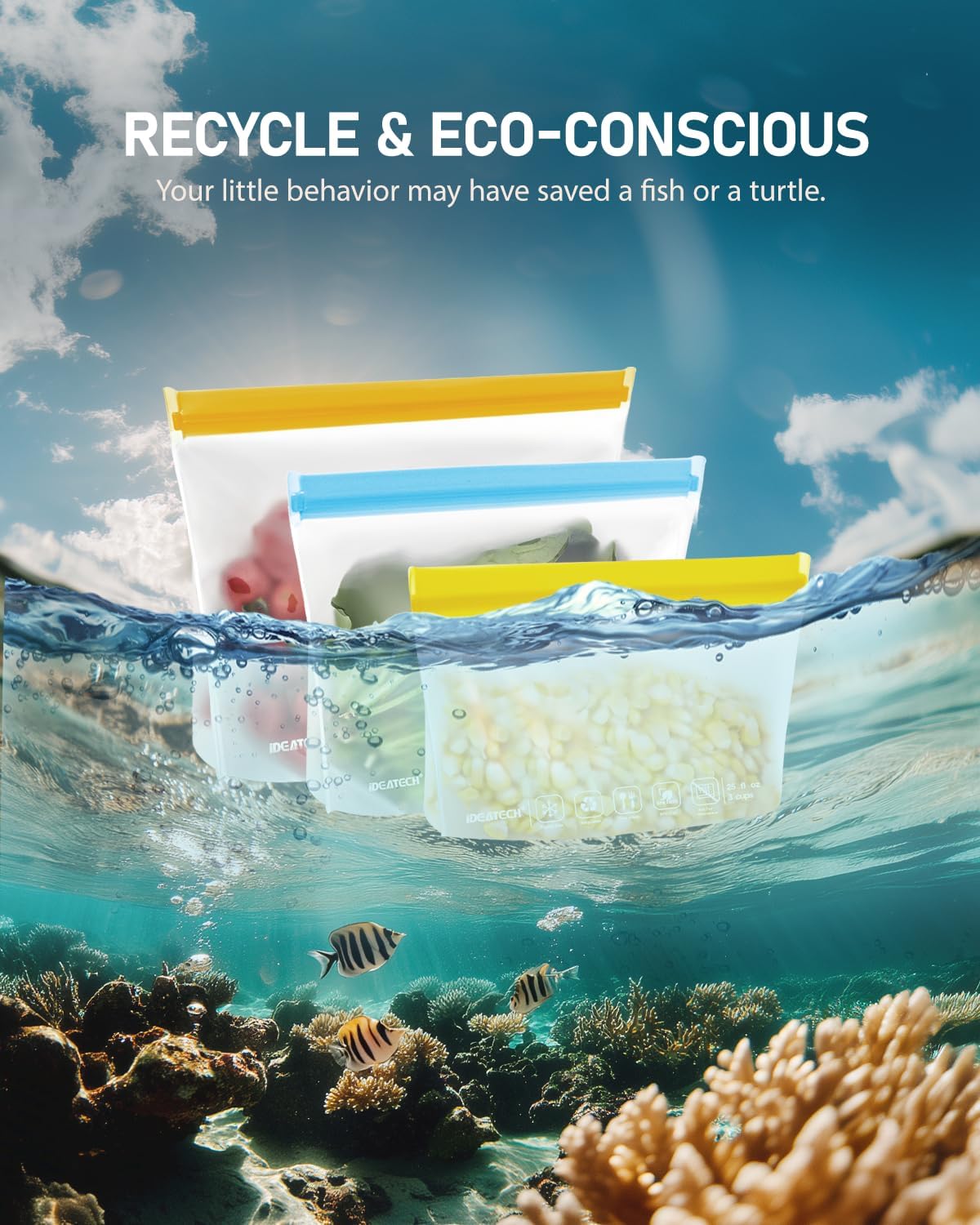 - Dishwasher Safe & Easy to Clean:IDEATECH reusable silicone bags is easy to clean and dry, Simply turn the reusable bag inside out and put it in the dishwasher for easy cleaning then put it on the top rack of the dishwasher and they’re good as new when they come out. But please skip high-temperature functions such as the dishwasher's drying to extend the lifespan of these food bags.