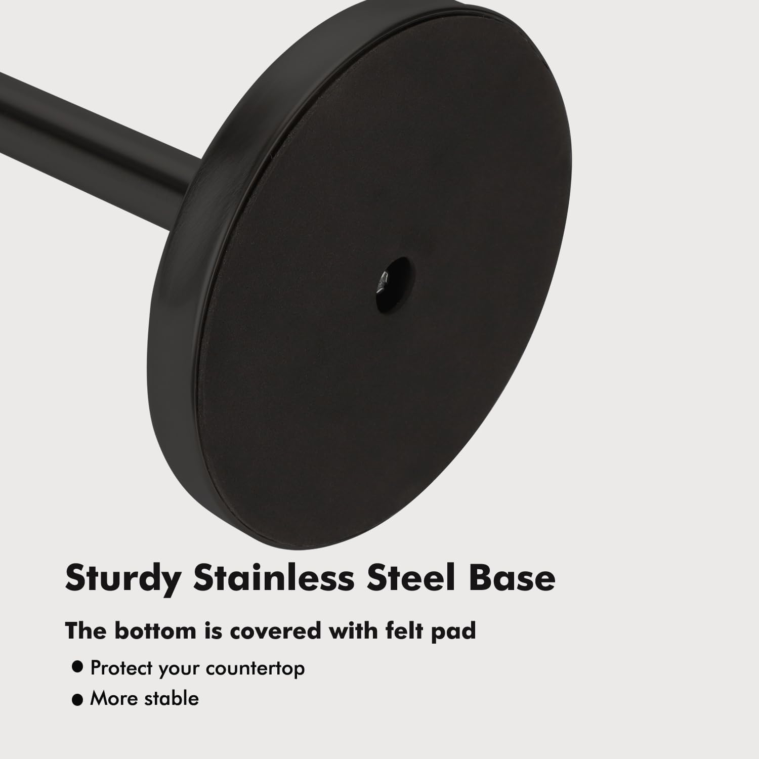 - Base bottom is covered with felt pad, ensuring no scratching to countertop, and keeping extra stability of base.