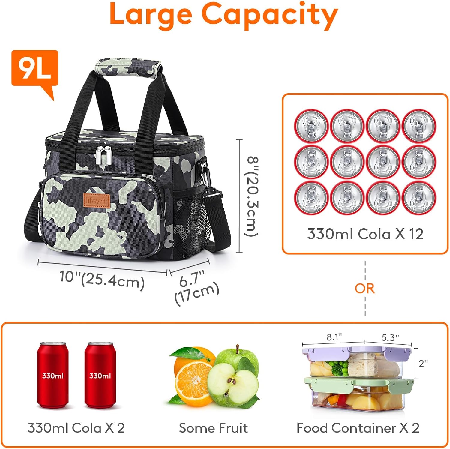 Lifewit Medium Lunch Bag Insulated Lunch Box Soft Cooler Cooling Tote for Adult Men Women, Camouflage 12-Can (9L)