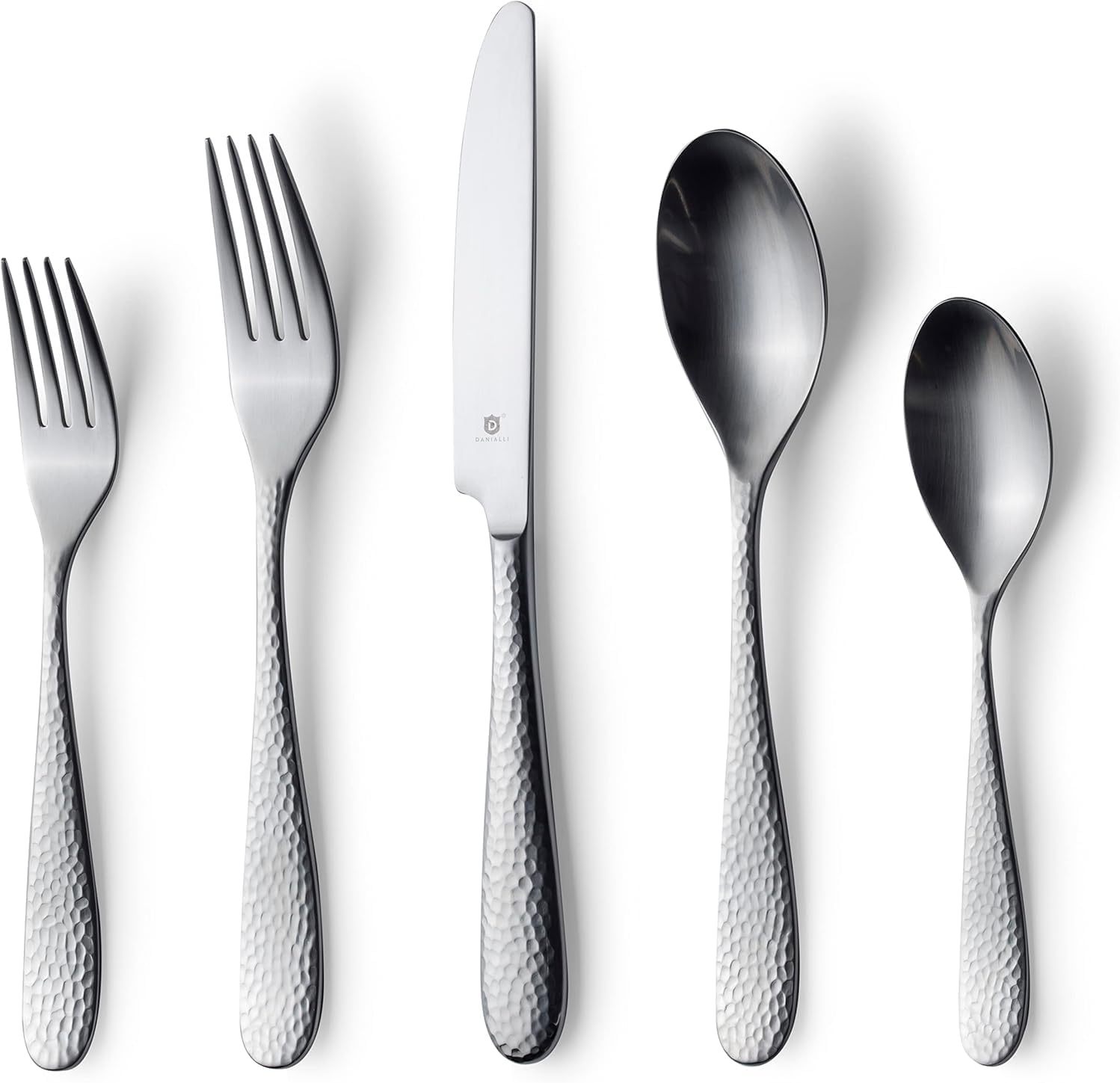 Matte Silverware Set, 18/10 Stainless Steel Satin Flatware, Modern Brushed Finish Cutlery, Dishwasher Safe & Durable, Built to Last (40-Piece, Fidenza Hammered)