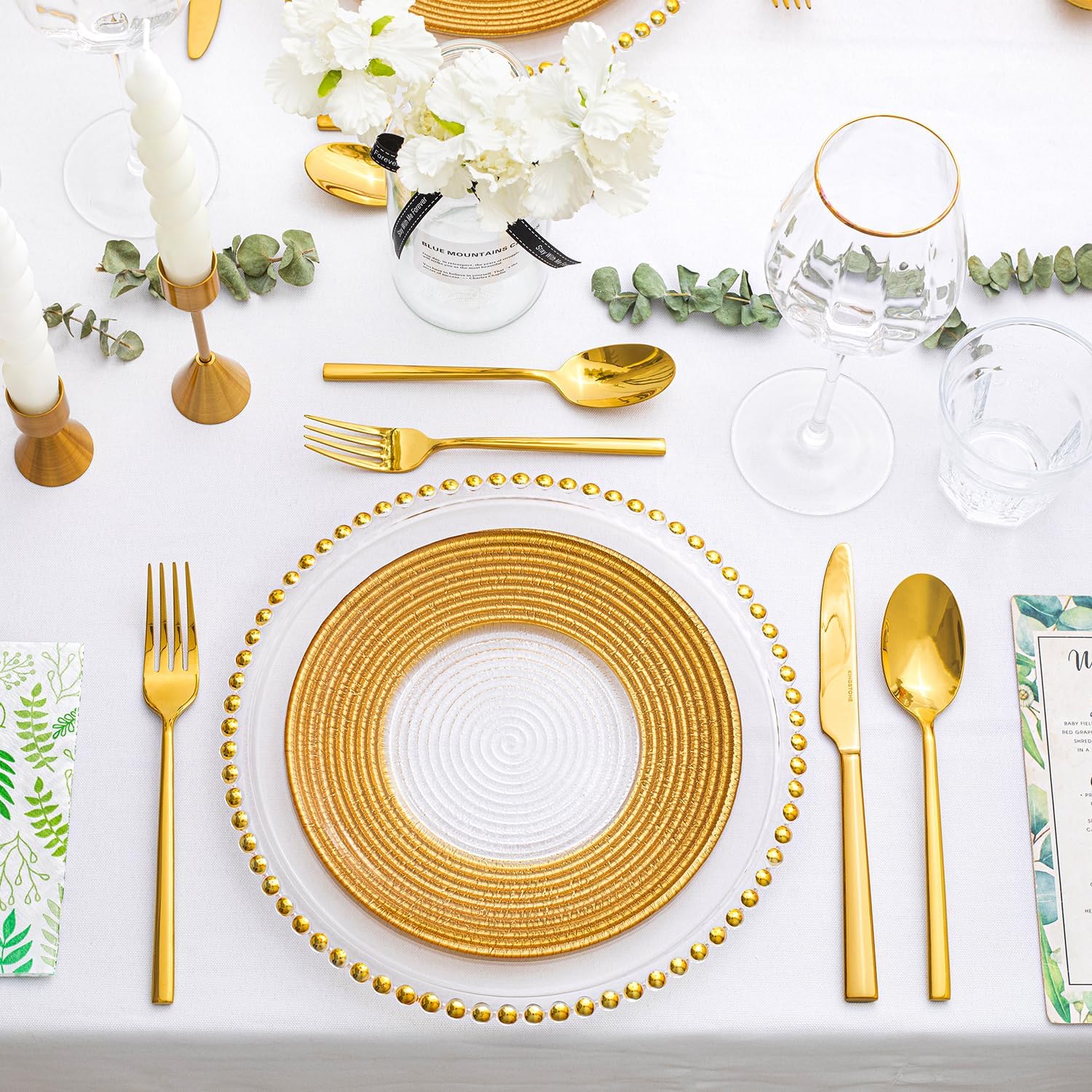 KINGSTONE Gold Silverware Set, 20-Piece Forged Flatware Set Cutlery Set Premium Stainless Steel, Service for 4, for Kitchen, Home, Wedding, Party, Mirror Polished and Dishwasher Safe