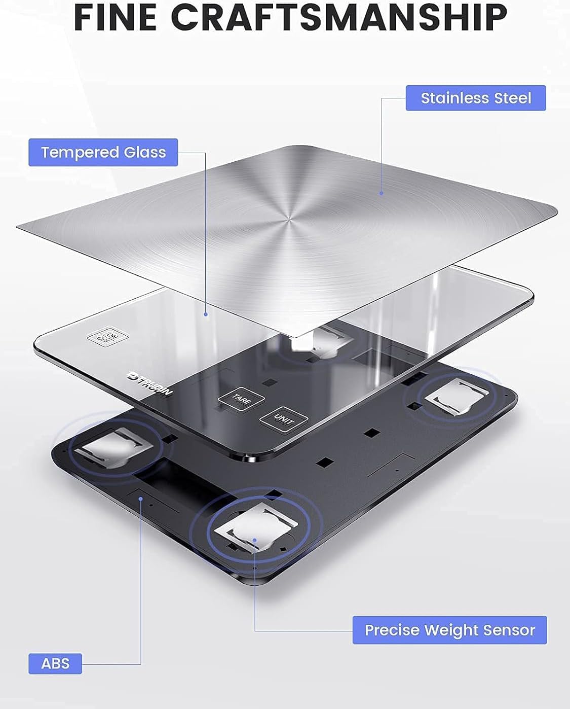 NASA-Grade 33lb Digital Kitchen Scale, Precisely Measures Grams and Ounces for Baking and Cooking, Waterproof Tempered Glass (Bright Black)