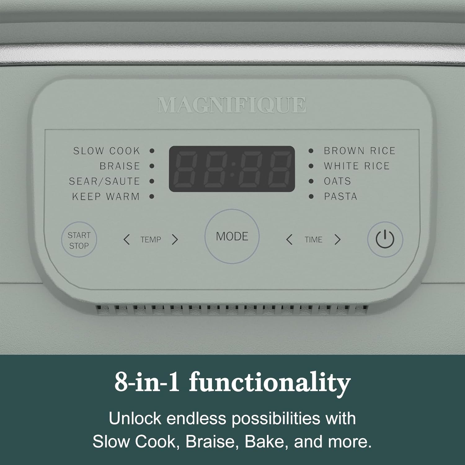 MAGNIFIQUE 4 Quart Claypot Multi-Cooker, with 8-in-1 Casserole Programmable Slow Cooker, Dutch Oven, Pasta, Nonstick Oven Safe Pot to 450°F, Olive