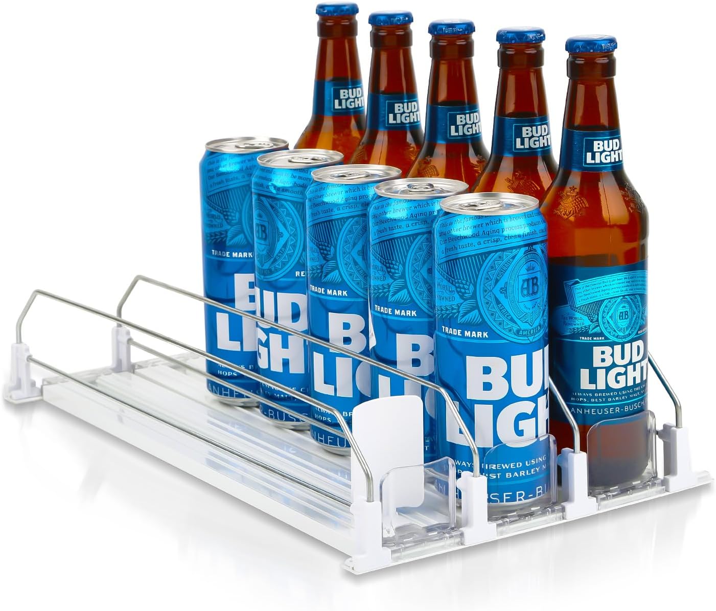 - 【Automatic Propulsion Design】 Spring-loaded drink organizer keeps your beverage cans always in the front position automatically, saves your space and ensures orderly storage and easy access to your drinks. This can storage rack can be widely used in refrigerators, garage coolers, commodity shelves, supermarkets or vending machines, etc.