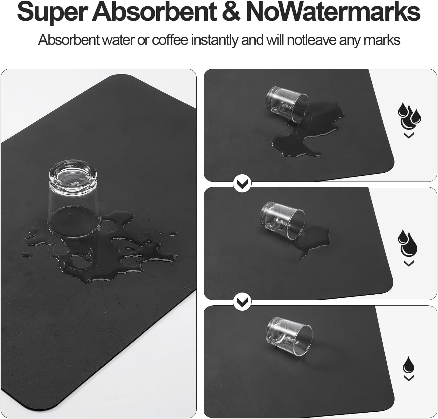 - 【Quick Absorption】 The soft diatomite dish drying mat instantly absorbs any liquid without staining your countertop.