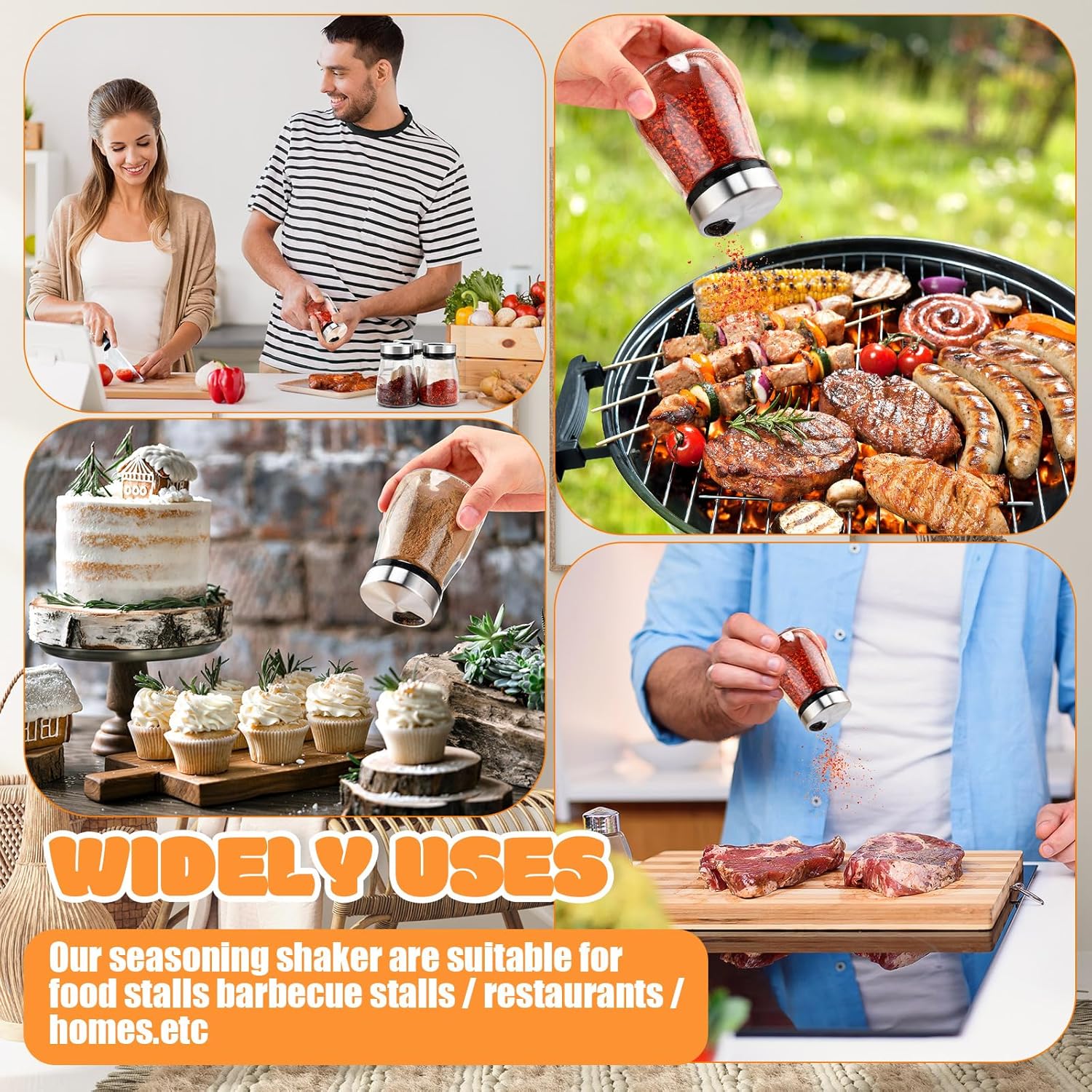 - Widely Applied: these spice bottles with holes and lids are suitable for storing condiments such as chili powder, salt, sugar, pepper, chicken essence, pepper powder, etc., widely applied in kitchens, canteens, hotels, restaurants, cake shops and other places