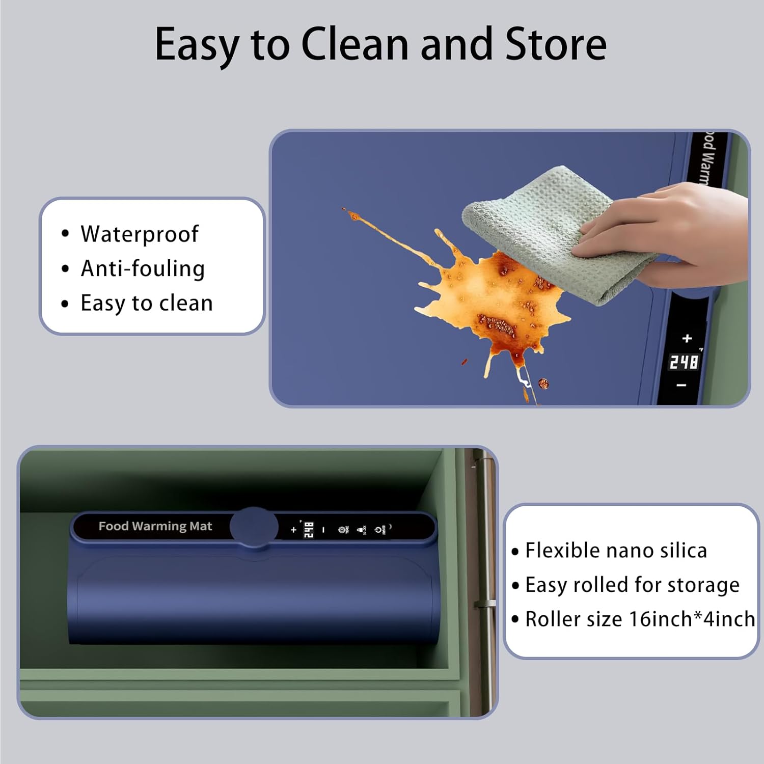 - Compact and Foldable: The rollable silicone warming mat has provided in a bag and a silicone strap, and easily put it wherever you like, this innovative design allows for easy storage, saving valuable space in your home