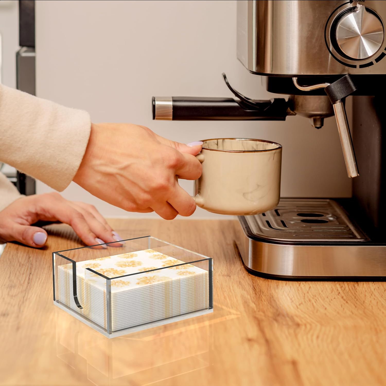 - Applicable size: The square napkin holder measures 5.3 x 5.3 x 2.4 inches, suitable for standard sized lunch napkins/dinner napkins or cocktail napkins/coasters/memos, etc.
