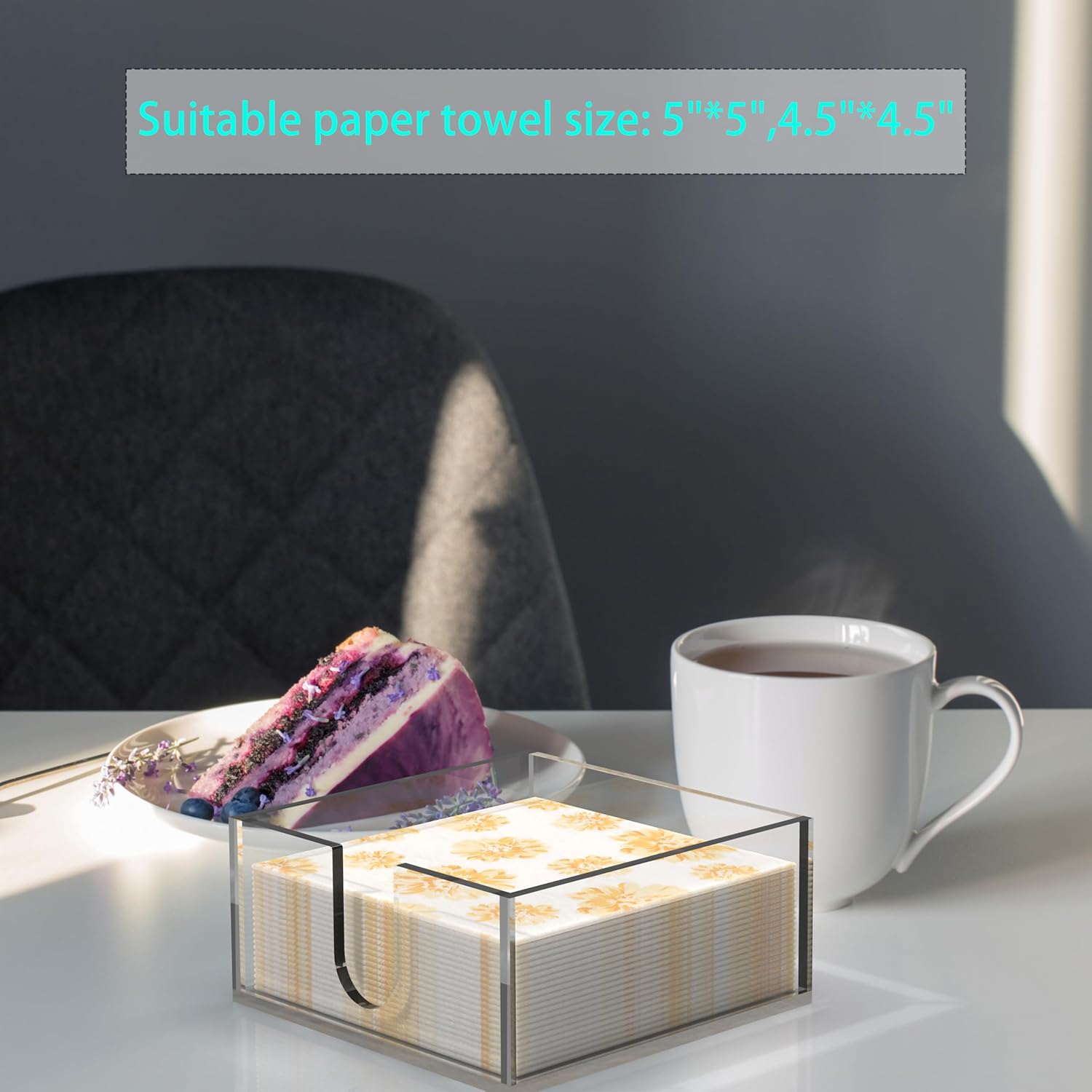 Rubtlamp 1Pcs Acrylic Cocktail Napkin Holder - 0.2Inch Thickness Bathroom Napkins Holder - Square Tissue Dispenser - Luncheon Napkins Holder for Table and Kitchen (Clear, 5.5”X5.5”X2.5”)