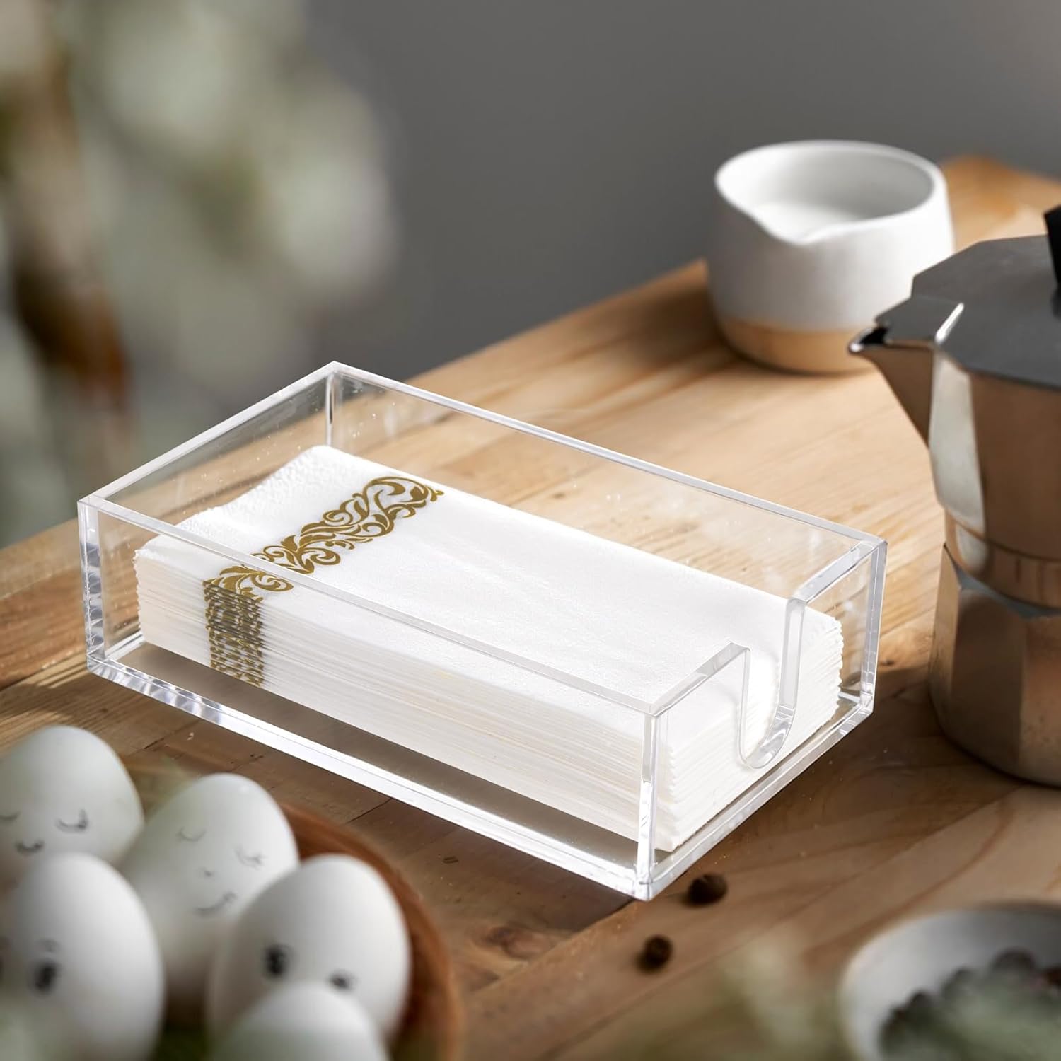 - Stress-Free Reach: Featuring an innovative side U-cut, this bathroom napkin holder tray delivers instant access to napkins - even with messy hands. Just pop it on your countertop (no tools needed) and enjoy one-handed convenience.