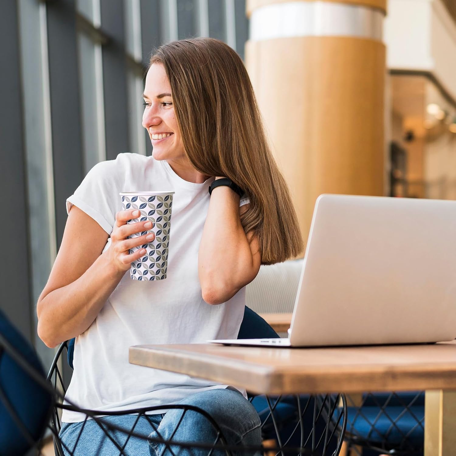 - 【Stylish Design】These coffee cups feature a unique blue and grey leaf print design that adds a touch of elegance to any setting. The fashion colors and simple patterns make them perfect for daily use and businesses