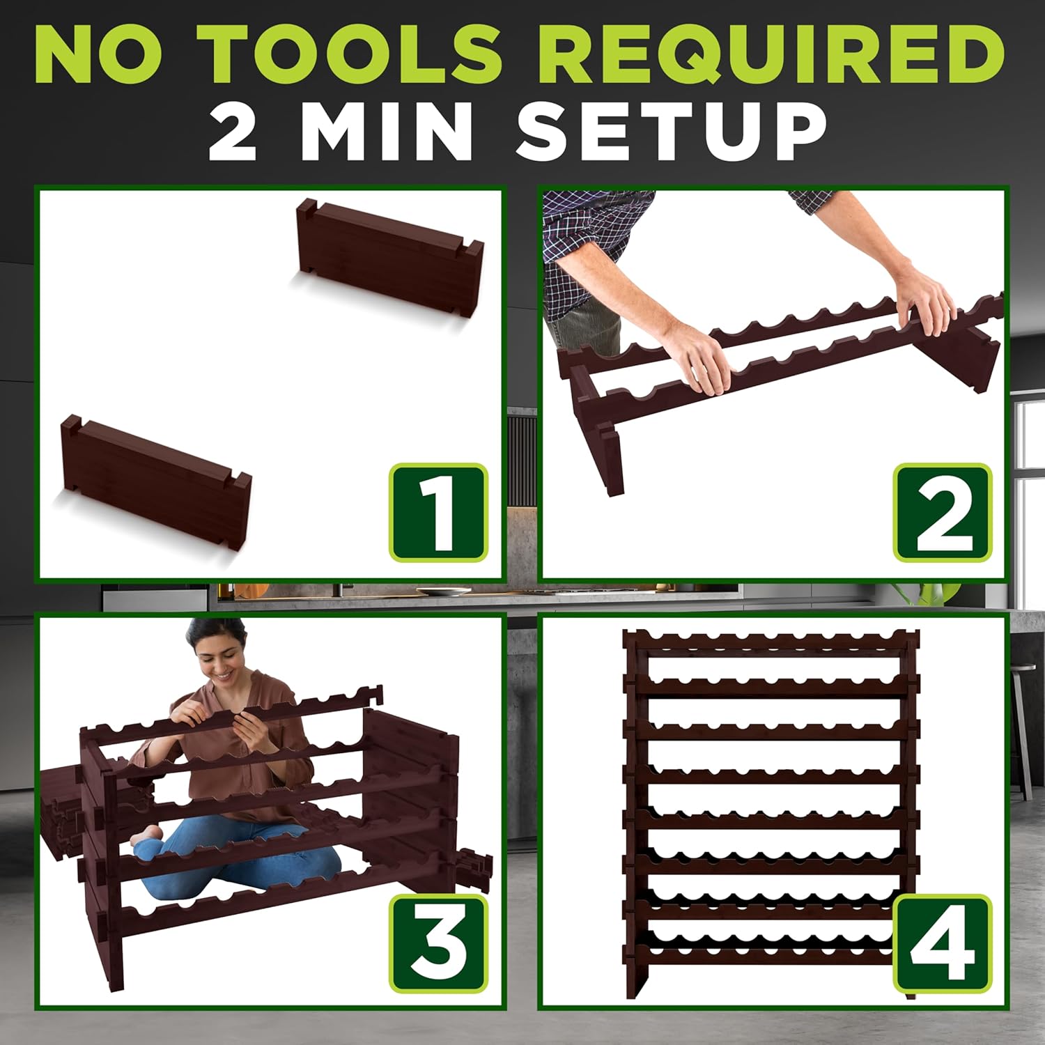 - NO TOOLS 2 MIN SETUP - The modular wine stacker assembles in just 2 minutes or less. The freestanding 8-tier modular wine display shelf comes in 16 wave bars and 16 blocks that easily snap together with no need for any hardware or tools.