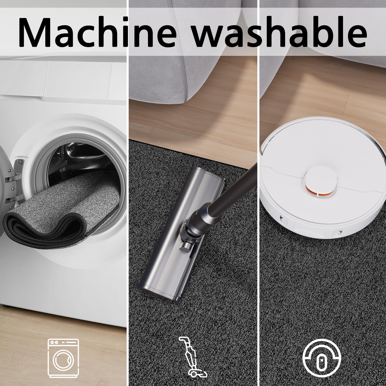 - EASY TO CLEAN AND MAINTAIN: Vacuum Cleaners, Robot Cleaners And Washing Machines Are Friendly To It. The Mat Will Not Be Damaged or Deformed During the Machine Washing Process, A Clean Rug For Kitchen Can Be Obtained Without Taking a Long Time, Premium Material Can Be Repeatedly Cleaned And Durable.