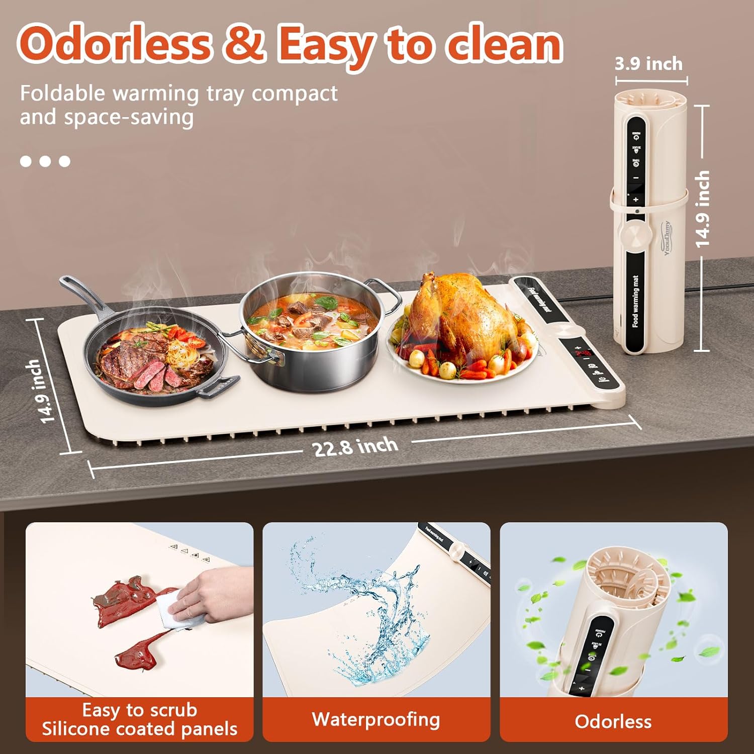 Warming Mat for Food - Electric Warming Tray with 9 Temperature Settings and 6 Hours Timer Food Warming Mat with Full Surface Heating for Buffets Party Gatherings(Beige)