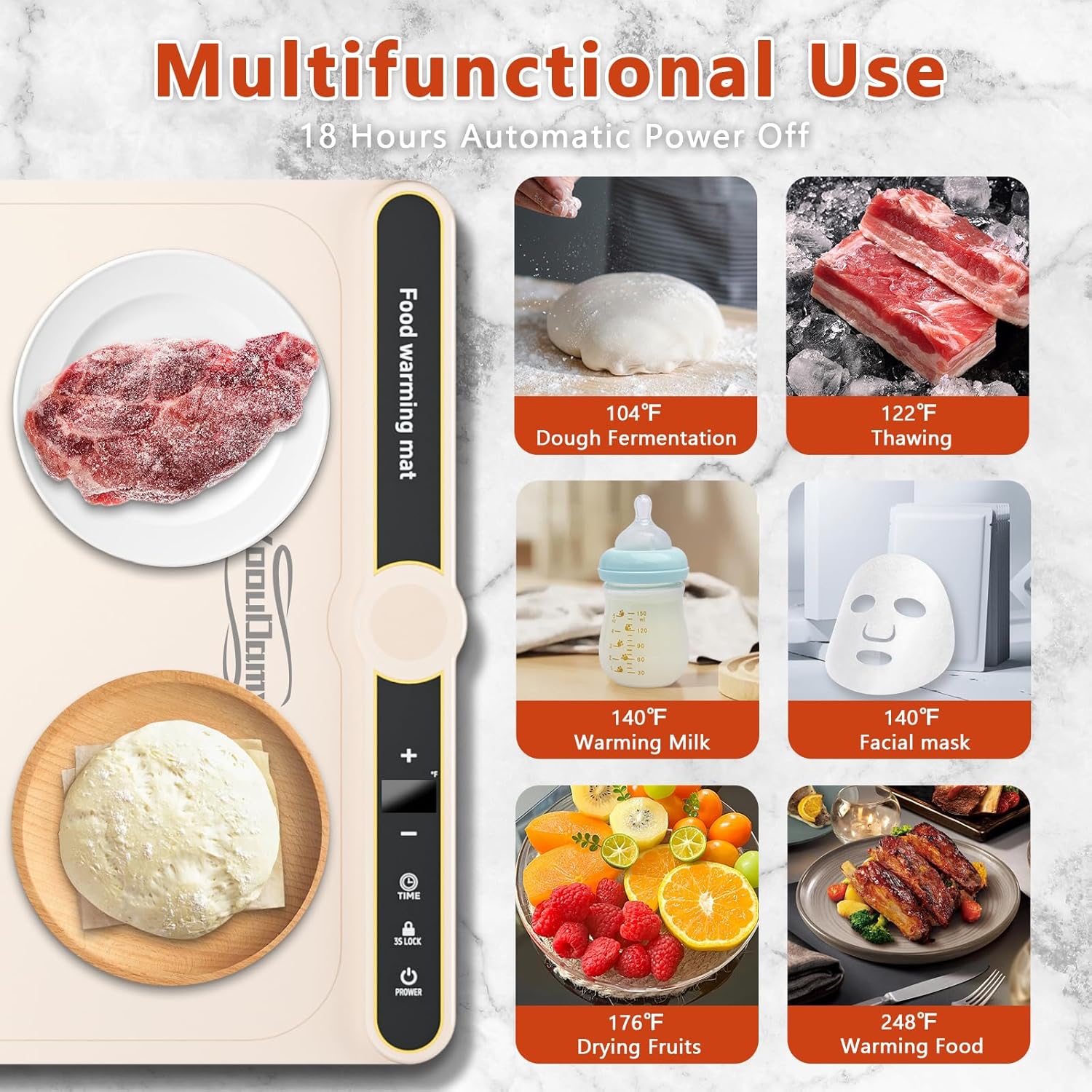 - 【Multi-Functional Kitchen Helper】The warming mat for food extra large is a multi-functional home helper for all kinds of heat-resistant materials, such as glass, stainless steel, ceramic, etc.; it not only keeps dishes warm during daily meals, but also helps to heat milk, thaw steak, ferment dough, etc., suitable for all seasons, can be used anytime, anywhere, keep dishes warm for family gatherings, parties, buffets, festivals, and other celebrations, always maintain the best taste