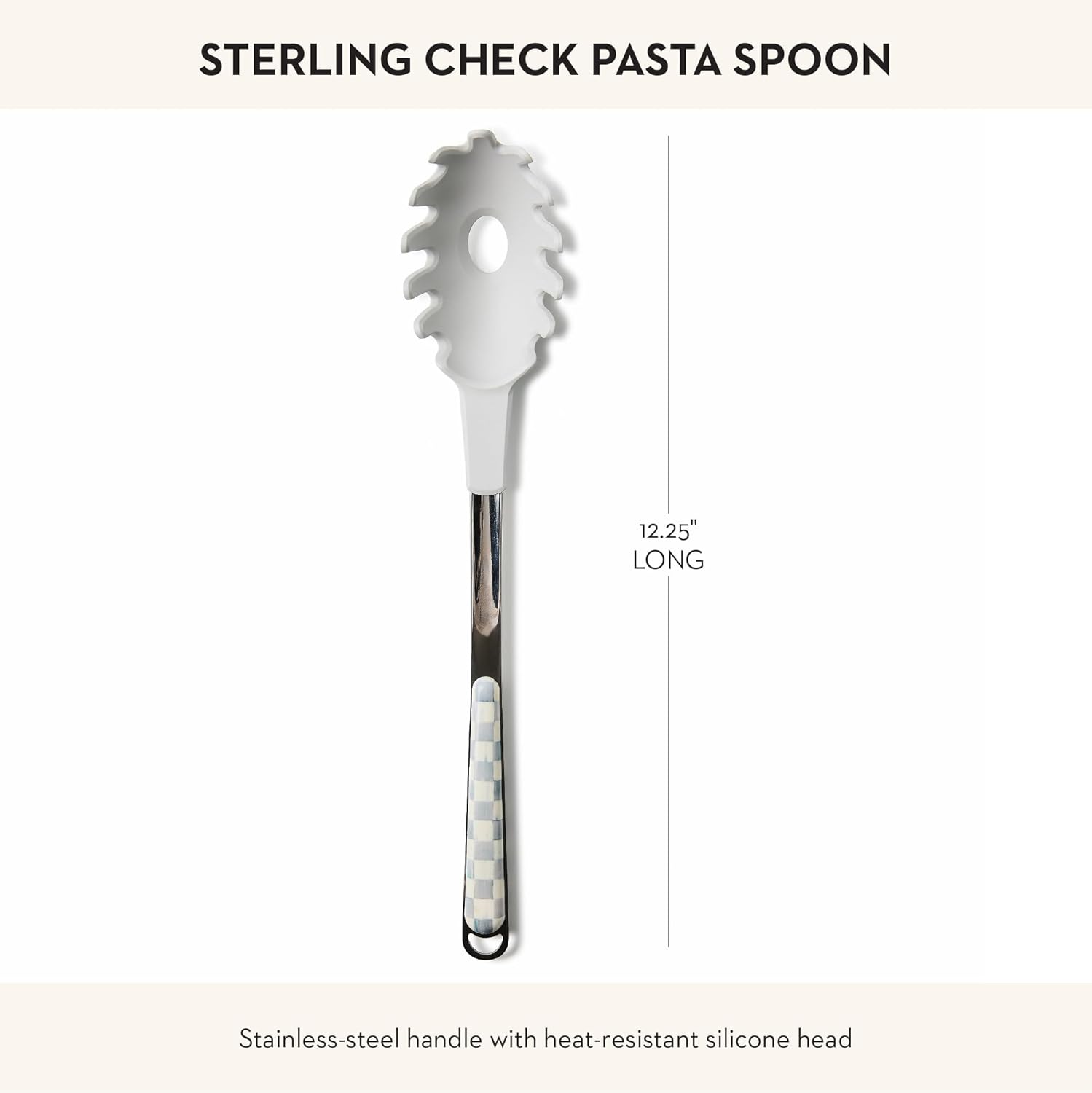 - ELEGANT SERVING ESSENTIAL: Our cute silicone pasta spoon features our subtle gray-and-white Sterling Check pattern on the handle. This chef-worthy serving tool is crafted with a stainless-steel handle and heat-resistant silicone teeth.